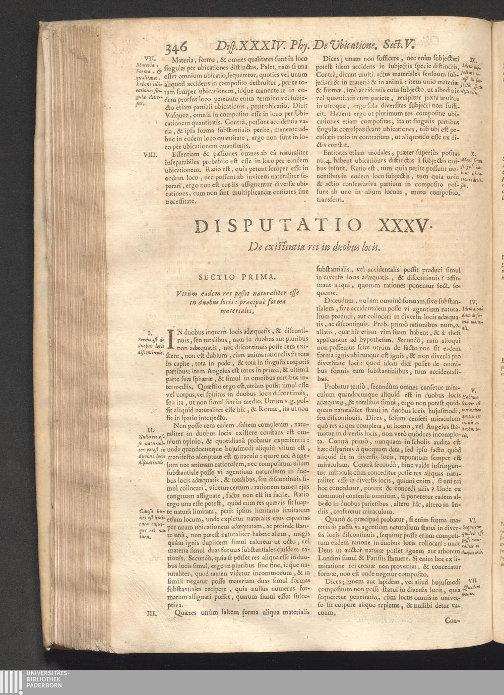 Dispvt. XXXV. De existentiâ rei in duobus locis.