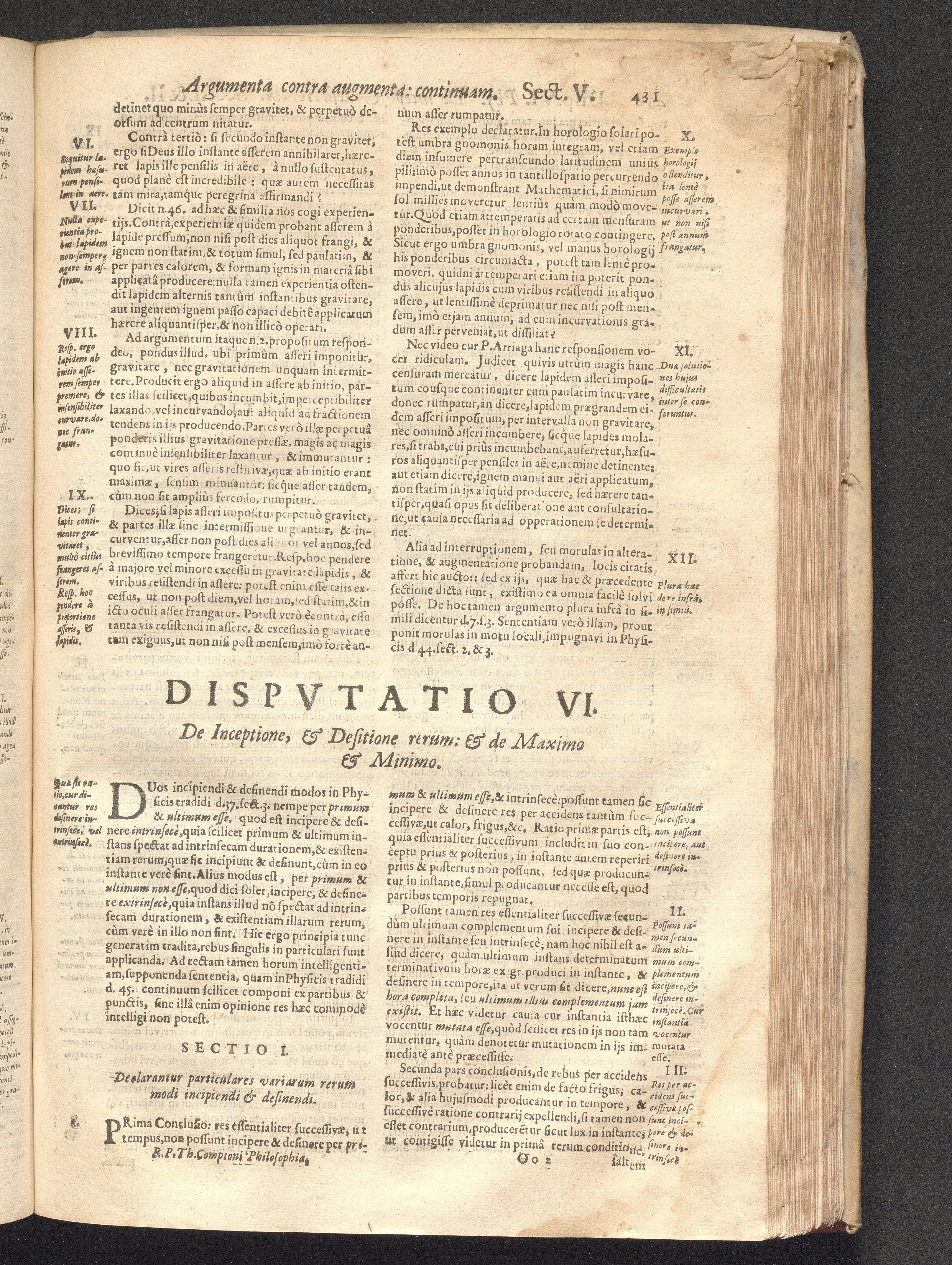 Disput. VI. De Inceptione & Desitione rerum: & de Maximo & Minimo.