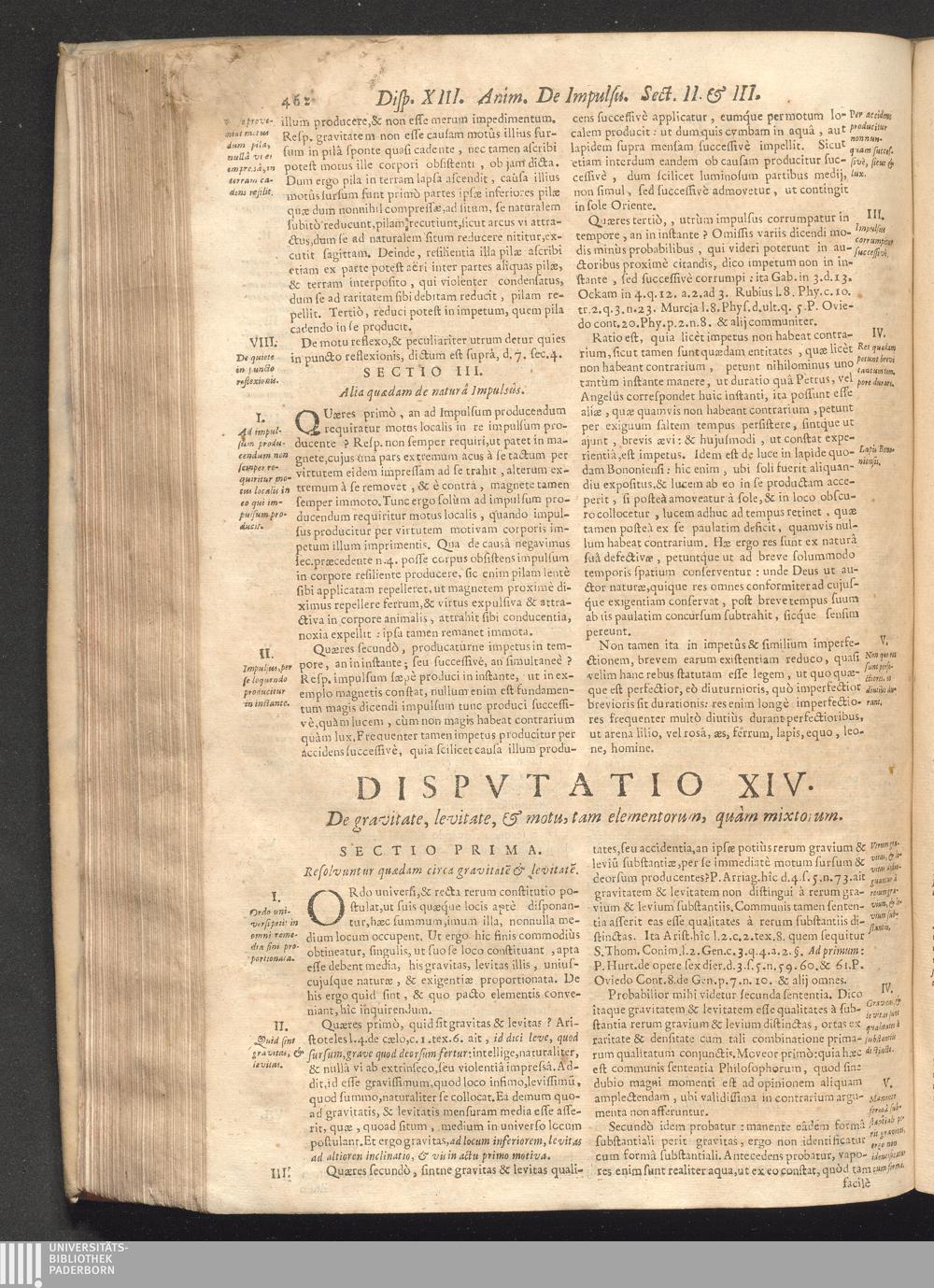Disput. XIV. De gravitate, levitate, & motu, tam elementorum, quam mixtorum.