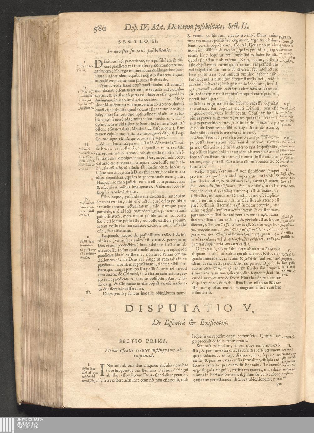 Dispvt. V. De Essentia & Existentia.