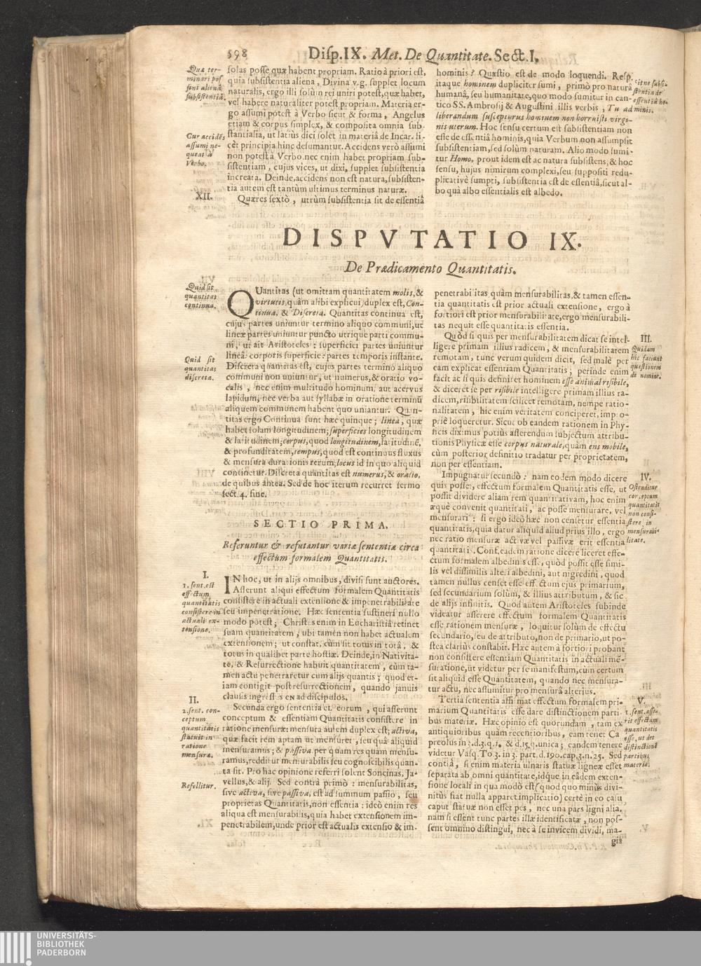 Dispvt. IX. De Prӕdicamento Quantitatis.