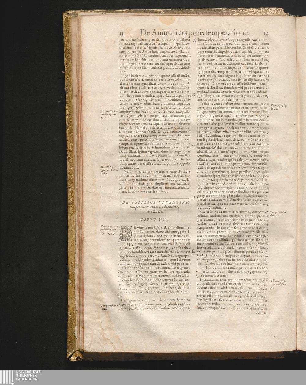 IIII. De triplici viuentium temperatione, innata, aduentitia & actuata.