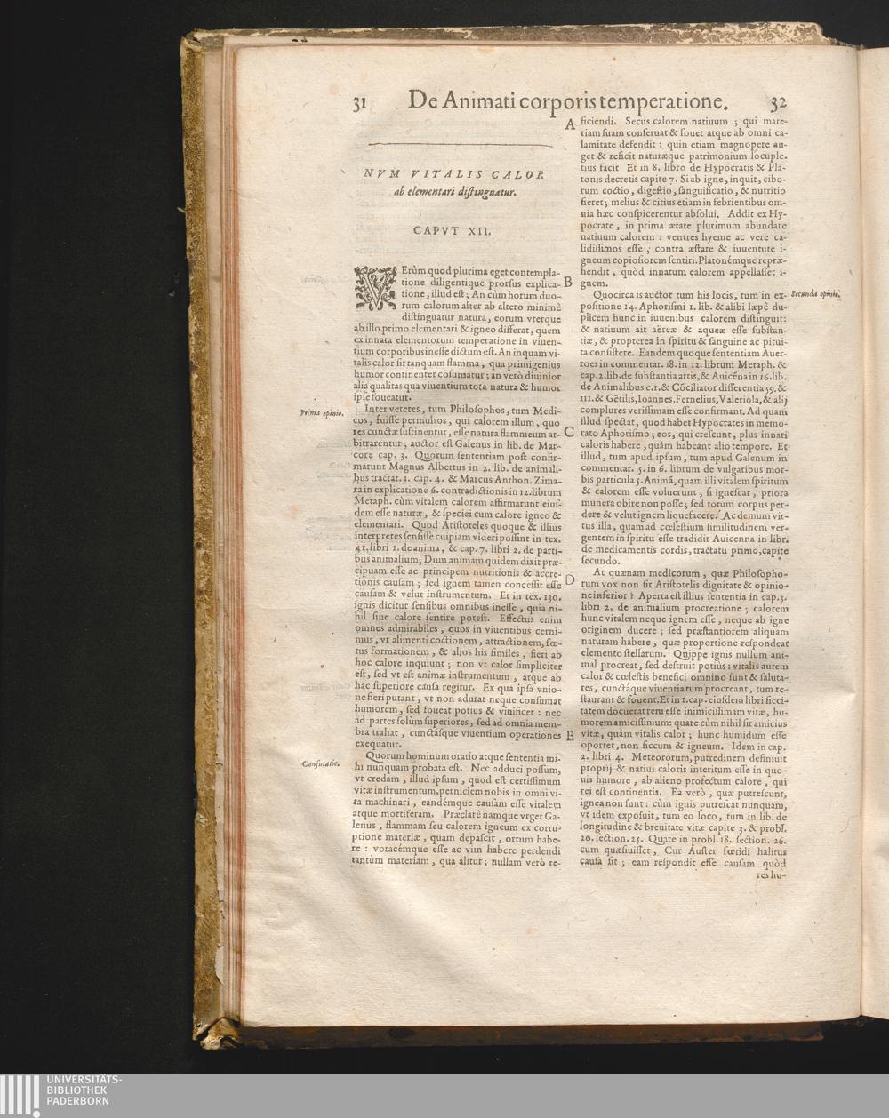 XII. Num vitalis calor ab eleme[n]tari distinguatur.