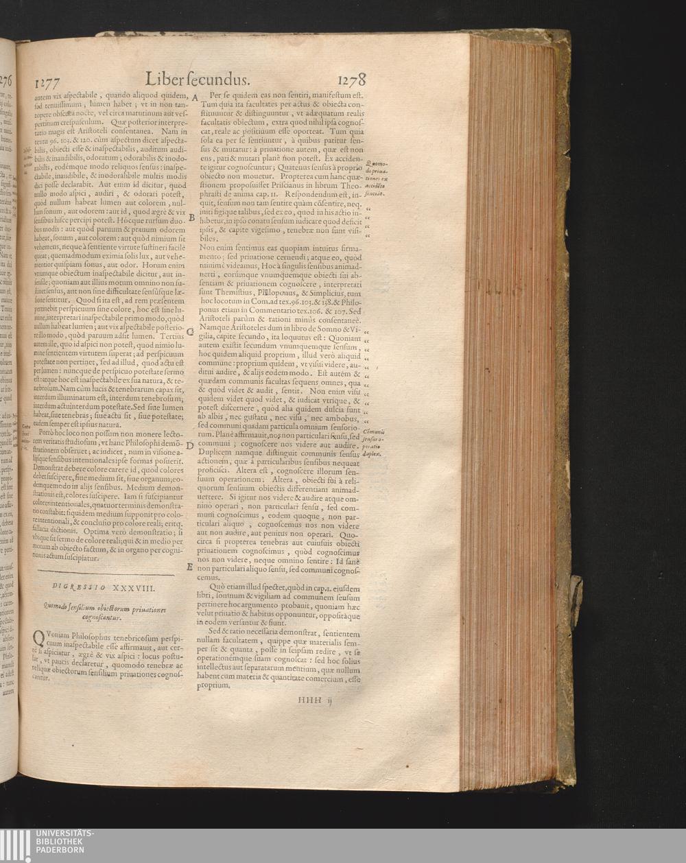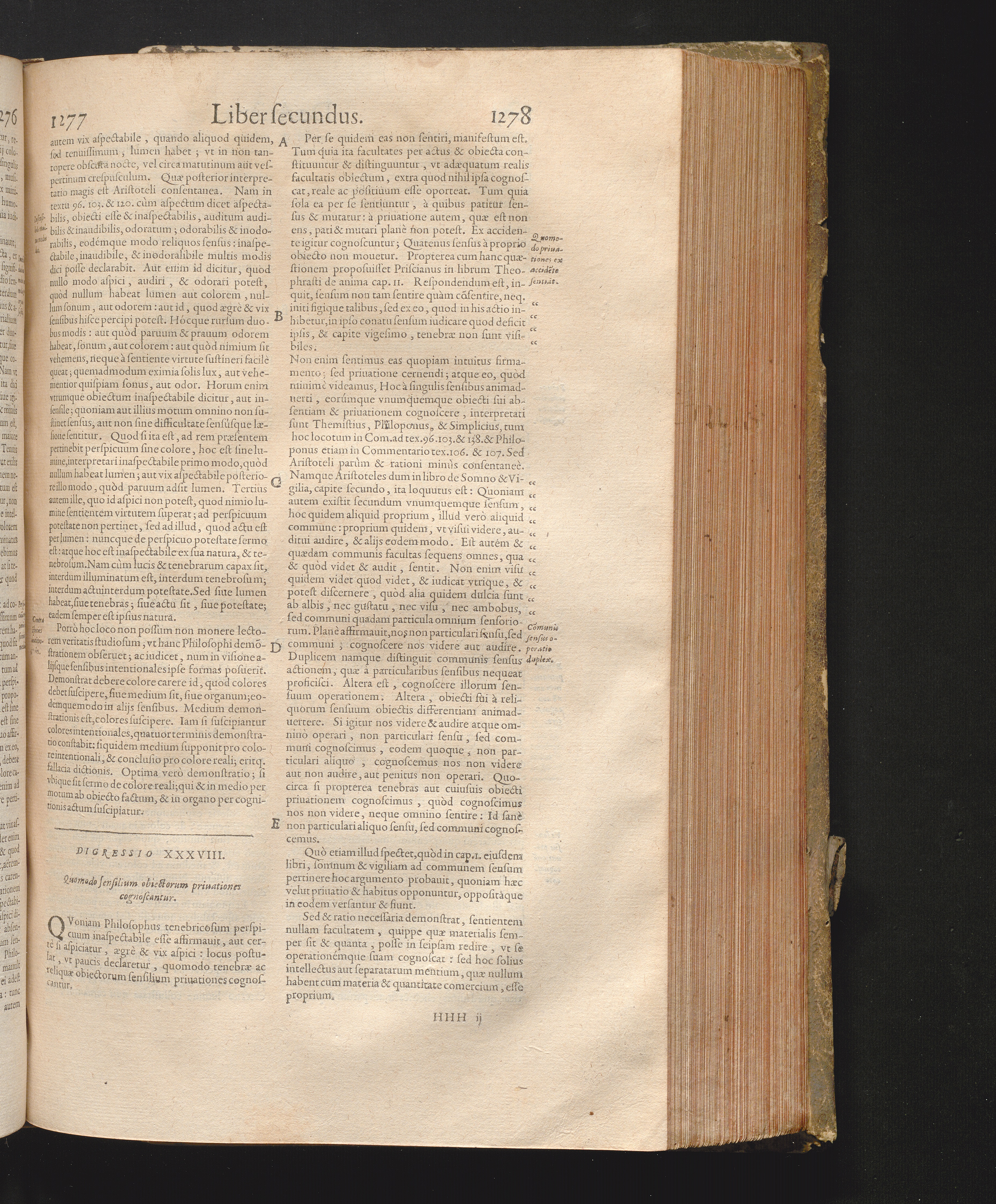Digressio 38. Quomodo sensilium obiectorum priuationes cognoscantur, ad tex. com[...]