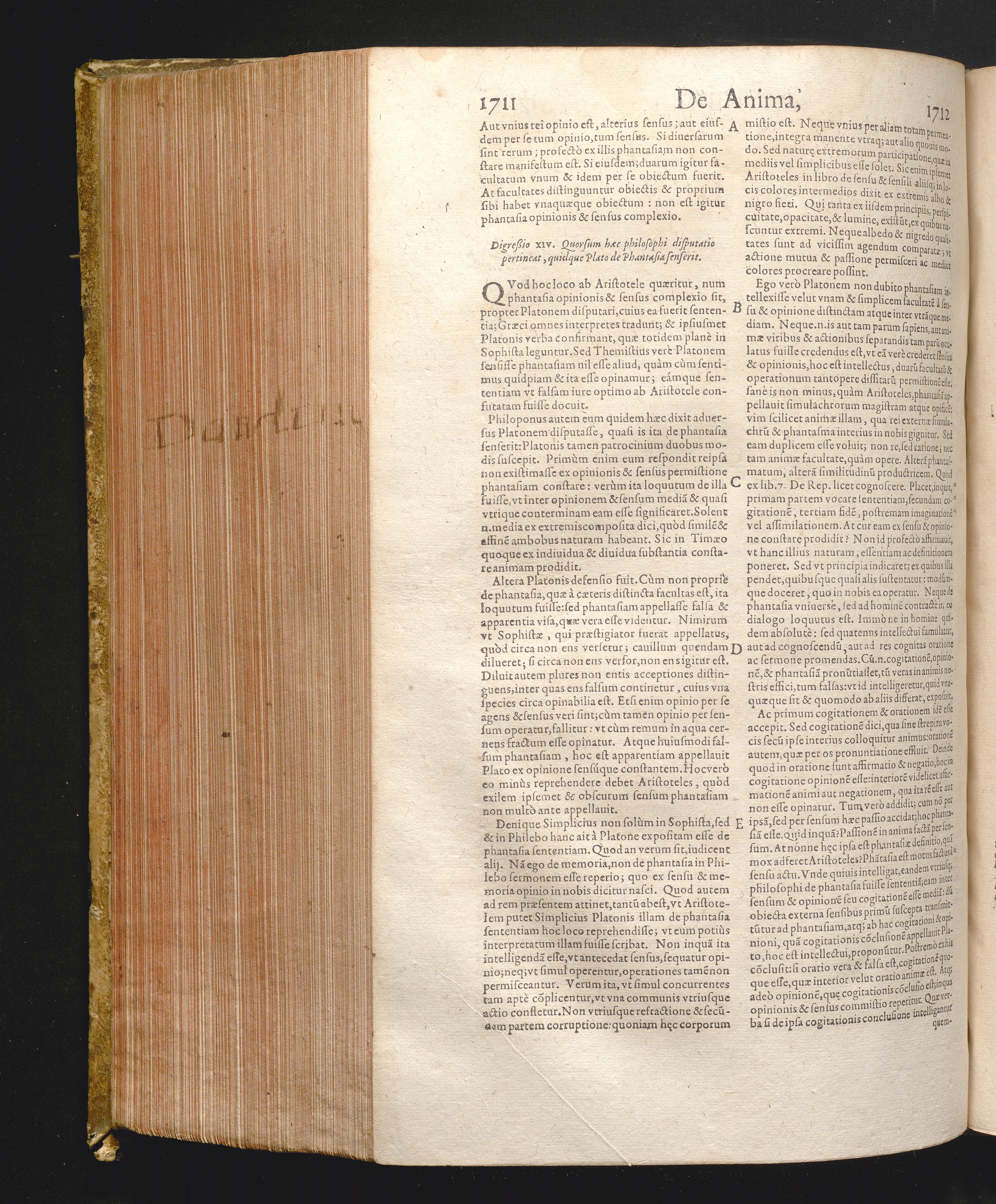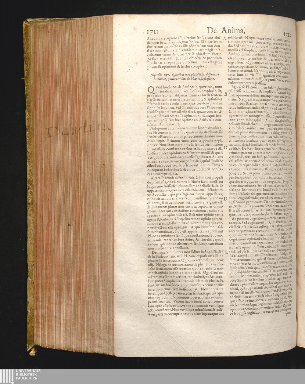 Digr. 14. Quorsum hæc Philosophi disputatio pertineat. Quidque de pha[n]tasia senserit[...]