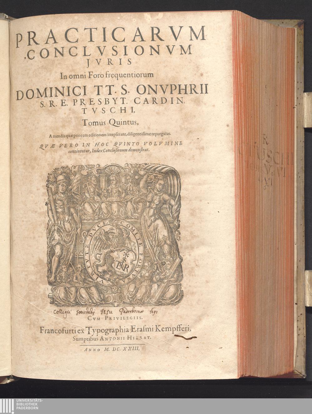 5 (1623) Practicarvm Conclvsionvm Jvris In omni Foro frequentiorum Dominici TT. S. Onvphrii S. R. E. Presbyt. Cardin. Tvschi, Tomus ...