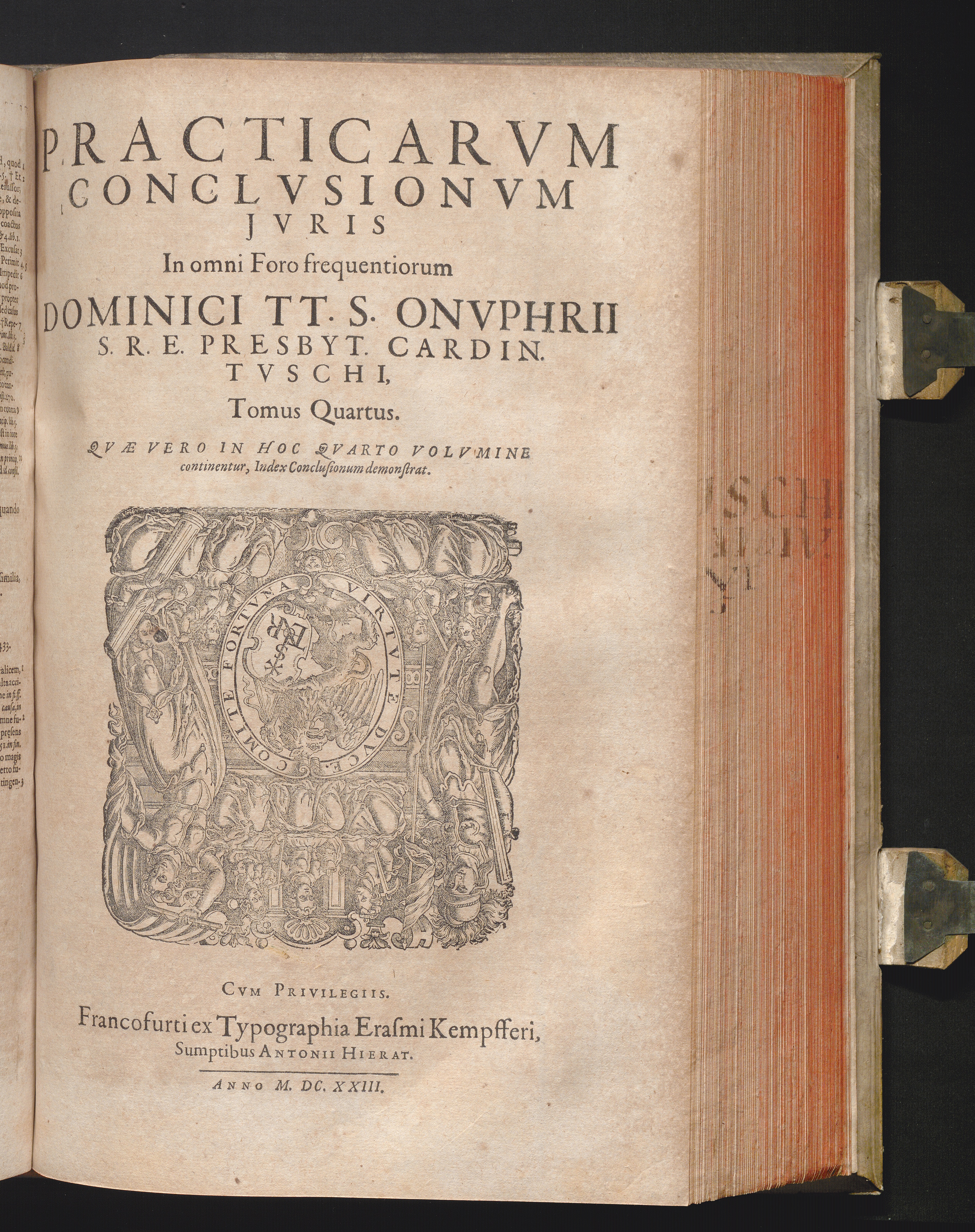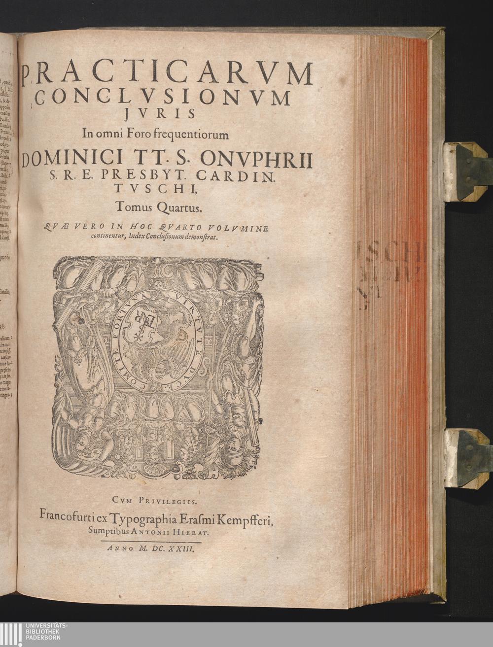 4 (1623) Practicarvm Conclvsionvm Jvris In omni Foro frequentiorum Dominici TT. S. Onvphrii S. R. E. Presbyt. Cardin. Tvschi, Tomus ...