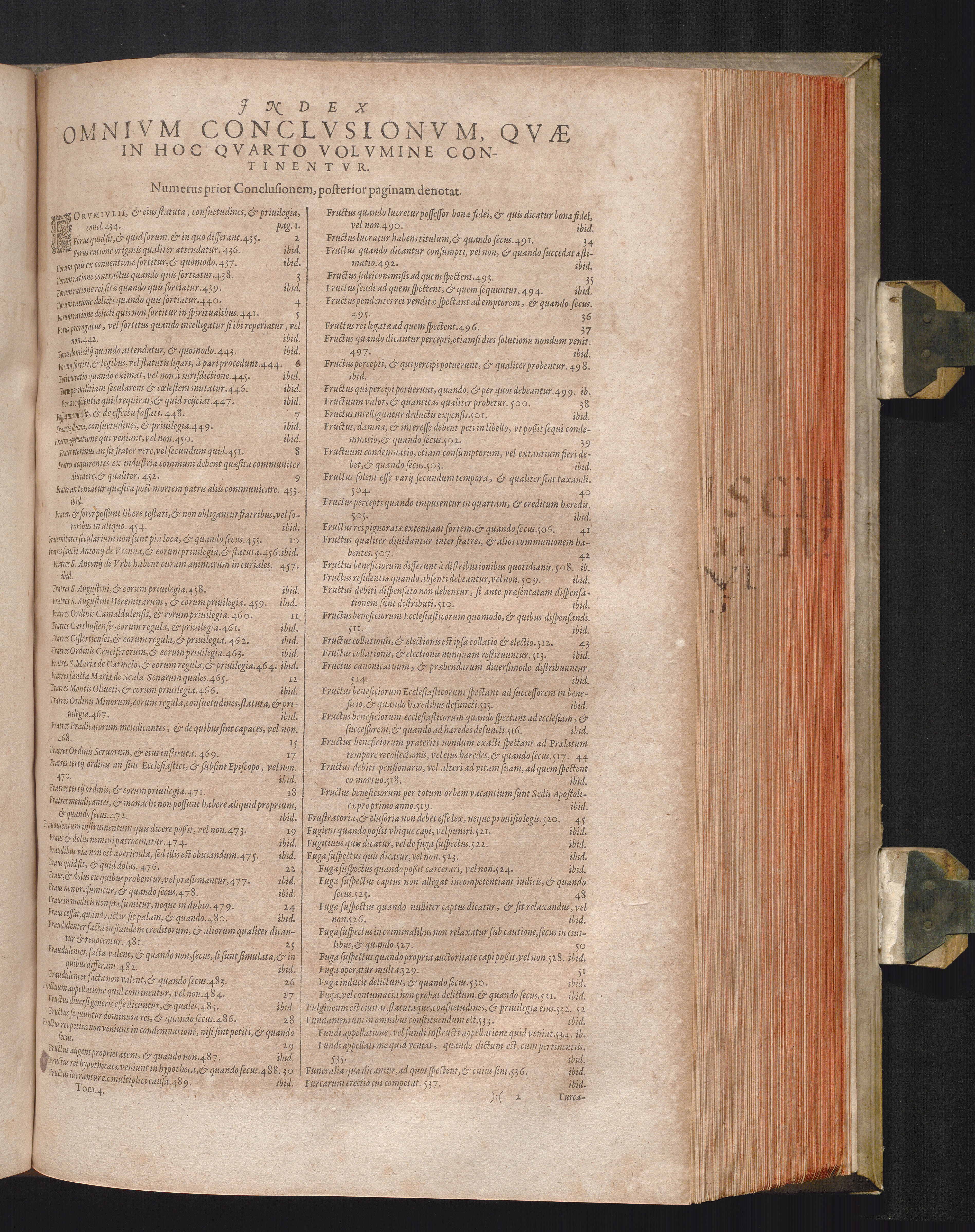 Jndex Omnivm Conclvsionvm, Qvæ In Hoc Qvarto Volvmine Continentvr.
