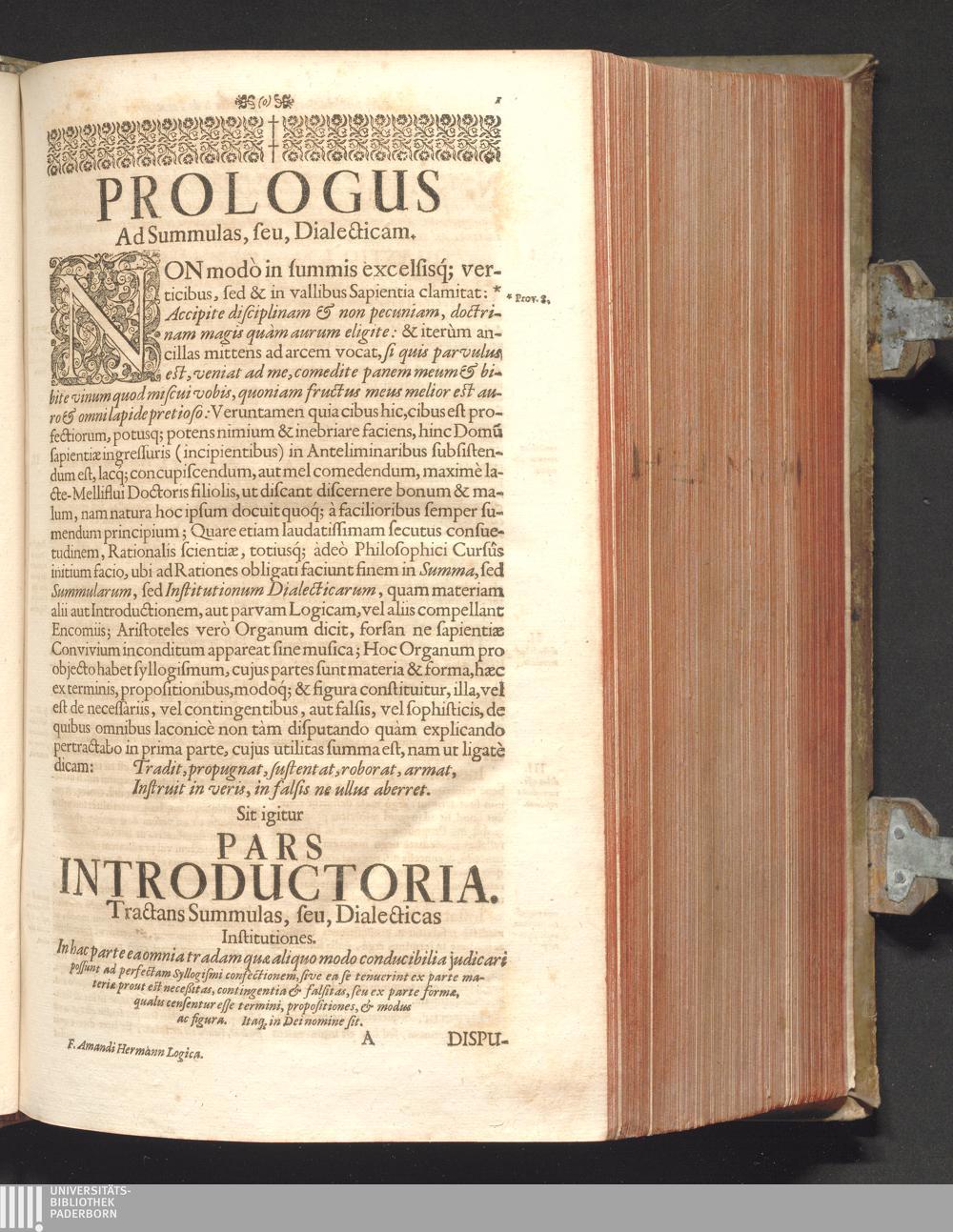 Sol Triplex In Eodem Universo : Id Est, Universæ Philosophiæ Cursus Integer, Trium Solemnissimorum Doctorum, (Quorum Doctrina in utraque Ecclesia Triumphante, & Militante, ut splendor Solis, relucet, fulgetque;) Authoritate fulcitus, roboratus textu, & menti genuinæ conformatus: Nempe Augusti Et Magni Augustini; Melliflui Et Lactei Bernardi; Atqve Subtilissimi Doctoris Joannis Duns Scoti. Tribus Sacris, ac in Vinea Domini Sabaoth Emeritissimis Religionibus, Augustinianæ, Cisterciensi et Franciscanæ, dedicatus, consecratus & oblatus / Authore P.F. Amando Hermann, Silesio Nissensi, Ordin. Min. Reform. Provinciae Bohemiae S. Wenceslai D. ...