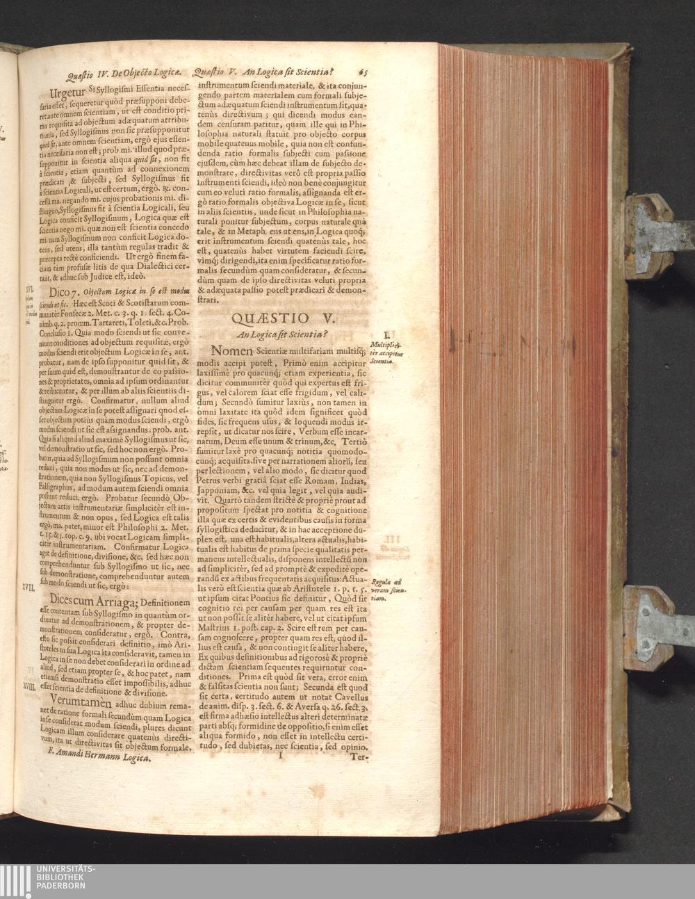 Sol Triplex In Eodem Universo : Id Est, Universæ Philosophiæ Cursus Integer, Trium Solemnissimorum Doctorum, (Quorum Doctrina in utraque Ecclesia Triumphante, & Militante, ut splendor Solis, relucet, fulgetque;) Authoritate fulcitus, roboratus textu, & menti genuinæ conformatus: Nempe Augusti Et Magni Augustini; Melliflui Et Lactei Bernardi; Atqve Subtilissimi Doctoris Joannis Duns Scoti. Tribus Sacris, ac in Vinea Domini Sabaoth Emeritissimis Religionibus, Augustinianæ, Cisterciensi et Franciscanæ, dedicatus, consecratus & oblatus / Authore P.F. Amando Hermann, Silesio Nissensi, Ordin. Min. Reform. Provinciae Bohemiae S. Wenceslai D. ...