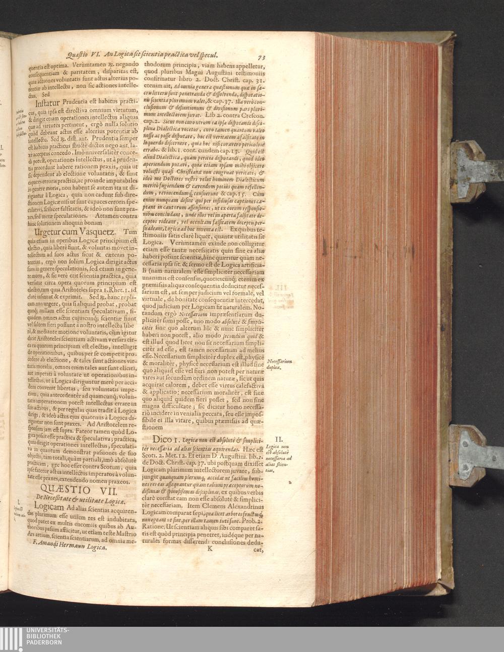 Sol Triplex In Eodem Universo : Id Est, Universæ Philosophiæ Cursus Integer, Trium Solemnissimorum Doctorum, (Quorum Doctrina in utraque Ecclesia Triumphante, & Militante, ut splendor Solis, relucet, fulgetque;) Authoritate fulcitus, roboratus textu, & menti genuinæ conformatus: Nempe Augusti Et Magni Augustini; Melliflui Et Lactei Bernardi; Atqve Subtilissimi Doctoris Joannis Duns Scoti. Tribus Sacris, ac in Vinea Domini Sabaoth Emeritissimis Religionibus, Augustinianæ, Cisterciensi et Franciscanæ, dedicatus, consecratus & oblatus / Authore P.F. Amando Hermann, Silesio Nissensi, Ordin. Min. Reform. Provinciae Bohemiae S. Wenceslai D. ...