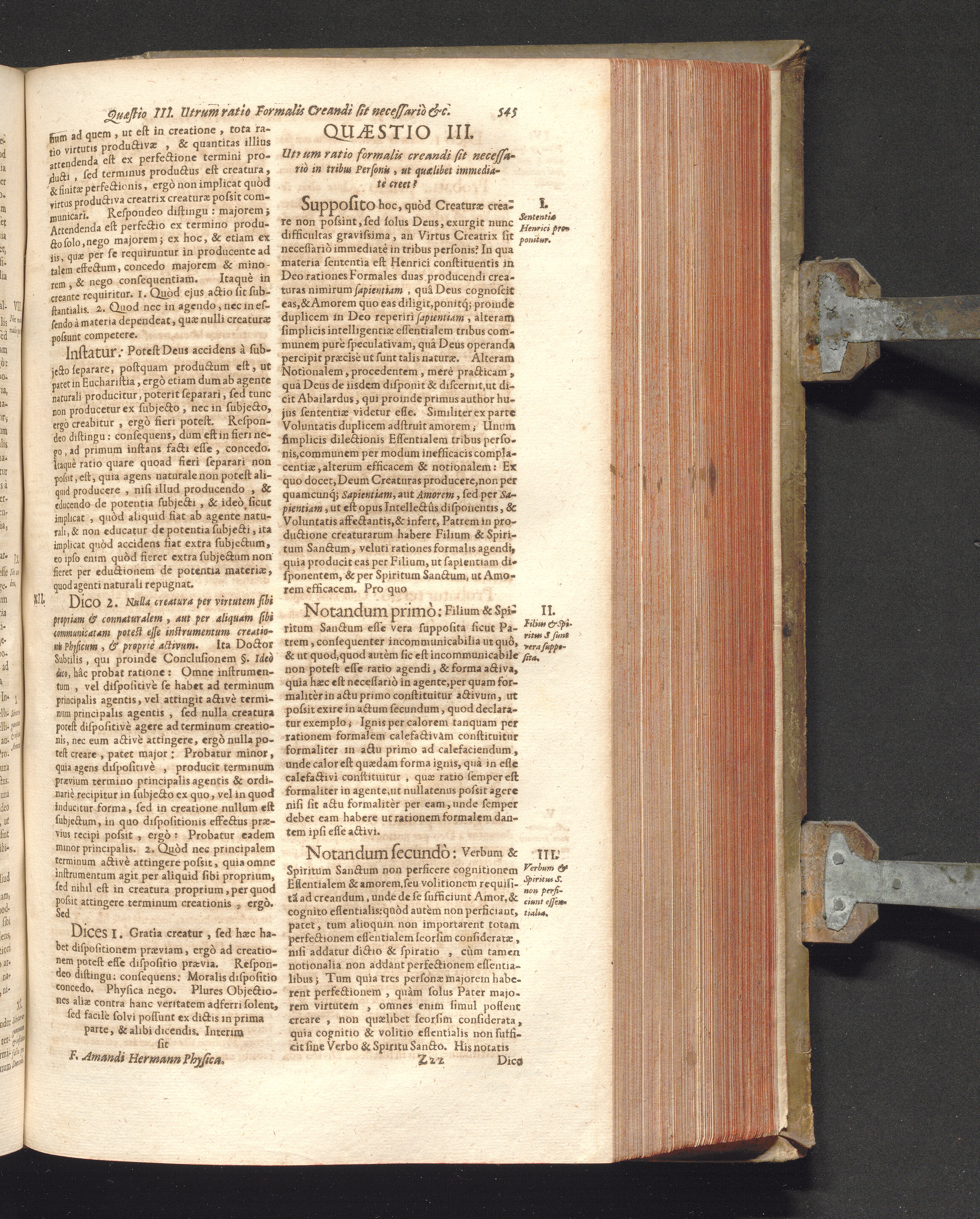 Sol Triplex In Eodem Universo : Id Est, Universæ Philosophiæ Cursus Integer, Trium Solemnissimorum Doctorum, (Quorum Doctrina in utraque Ecclesia Triumphante, & Militante, ut splendor Solis, relucet, fulgetque;) Authoritate fulcitus, roboratus textu, & menti genuinæ conformatus: Nempe Augusti Et Magni Augustini; Melliflui Et Lactei Bernardi; Atqve Subtilissimi Doctoris Joannis Duns Scoti. Tribus Sacris, ac in Vinea Domini Sabaoth Emeritissimis Religionibus, Augustinianæ, Cisterciensi et Franciscanæ, dedicatus, consecratus & oblatus / Authore P.F. Amando Hermann, Silesio Nissensi, Ordin. Min. Reform. Provinciae Bohemiae S. Wenceslai D. ...