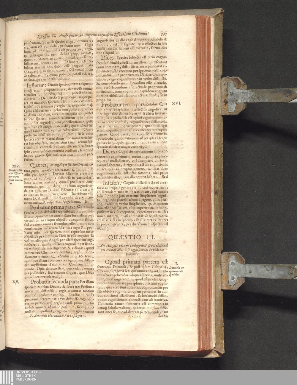 Sol Triplex In Eodem Universo : Id Est, Universæ Philosophiæ Cursus Integer, Trium Solemnissimorum Doctorum, (Quorum Doctrina in utraque Ecclesia Triumphante, & Militante, ut splendor Solis, relucet, fulgetque;) Authoritate fulcitus, roboratus textu, & menti genuinæ conformatus: Nempe Augusti Et Magni Augustini; Melliflui Et Lactei Bernardi; Atqve Subtilissimi Doctoris Joannis Duns Scoti. Tribus Sacris, ac in Vinea Domini Sabaoth Emeritissimis Religionibus, Augustinianæ, Cisterciensi et Franciscanæ, dedicatus, consecratus & oblatus / Authore P.F. Amando Hermann, Silesio Nissensi, Ordin. Min. Reform. Provinciae Bohemiae S. Wenceslai D. ...