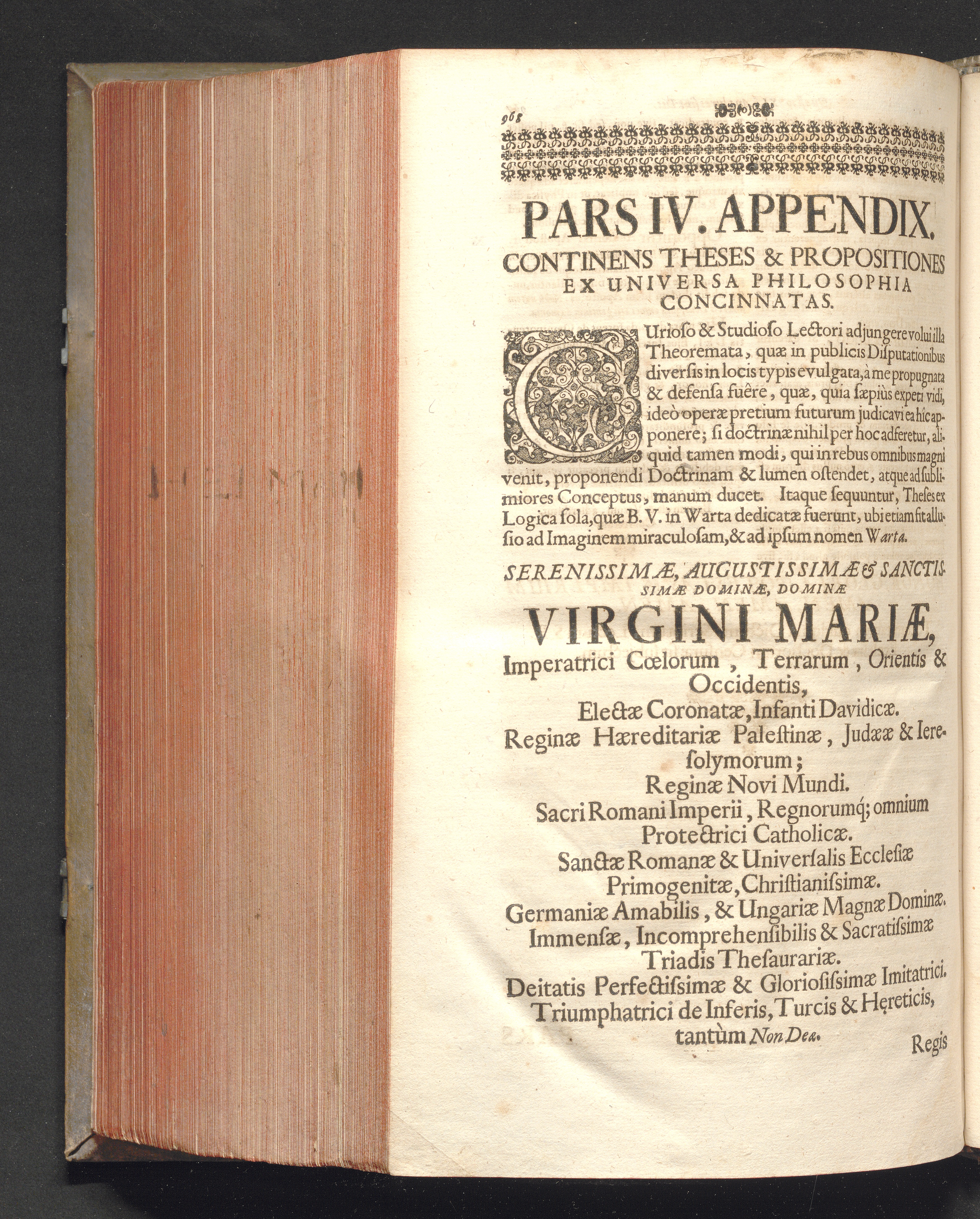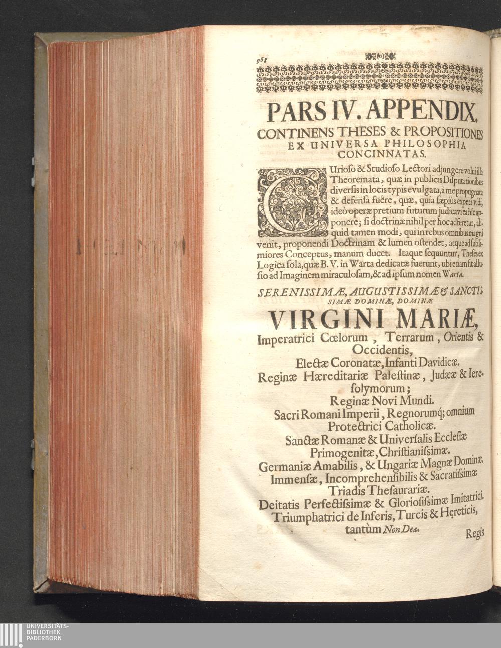 Sol Triplex In Eodem Universo : Id Est, Universæ Philosophiæ Cursus Integer, Trium Solemnissimorum Doctorum, (Quorum Doctrina in utraque Ecclesia Triumphante, & Militante, ut splendor Solis, relucet, fulgetque;) Authoritate fulcitus, roboratus textu, & menti genuinæ conformatus: Nempe Augusti Et Magni Augustini; Melliflui Et Lactei Bernardi; Atqve Subtilissimi Doctoris Joannis Duns Scoti. Tribus Sacris, ac in Vinea Domini Sabaoth Emeritissimis Religionibus, Augustinianæ, Cisterciensi et Franciscanæ, dedicatus, consecratus & oblatus / Authore P.F. Amando Hermann, Silesio Nissensi, Ordin. Min. Reform. Provinciae Bohemiae S. Wenceslai D. ...
