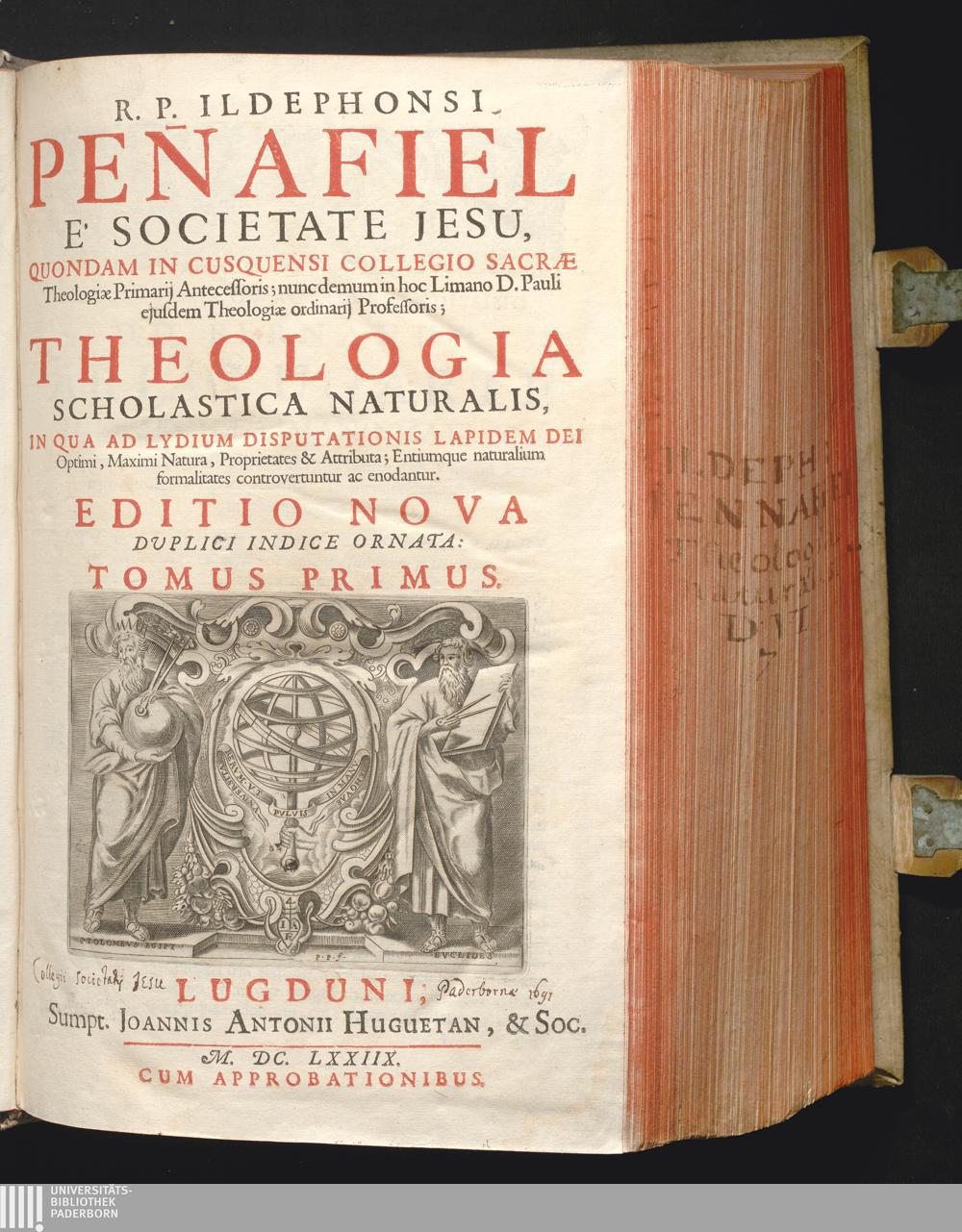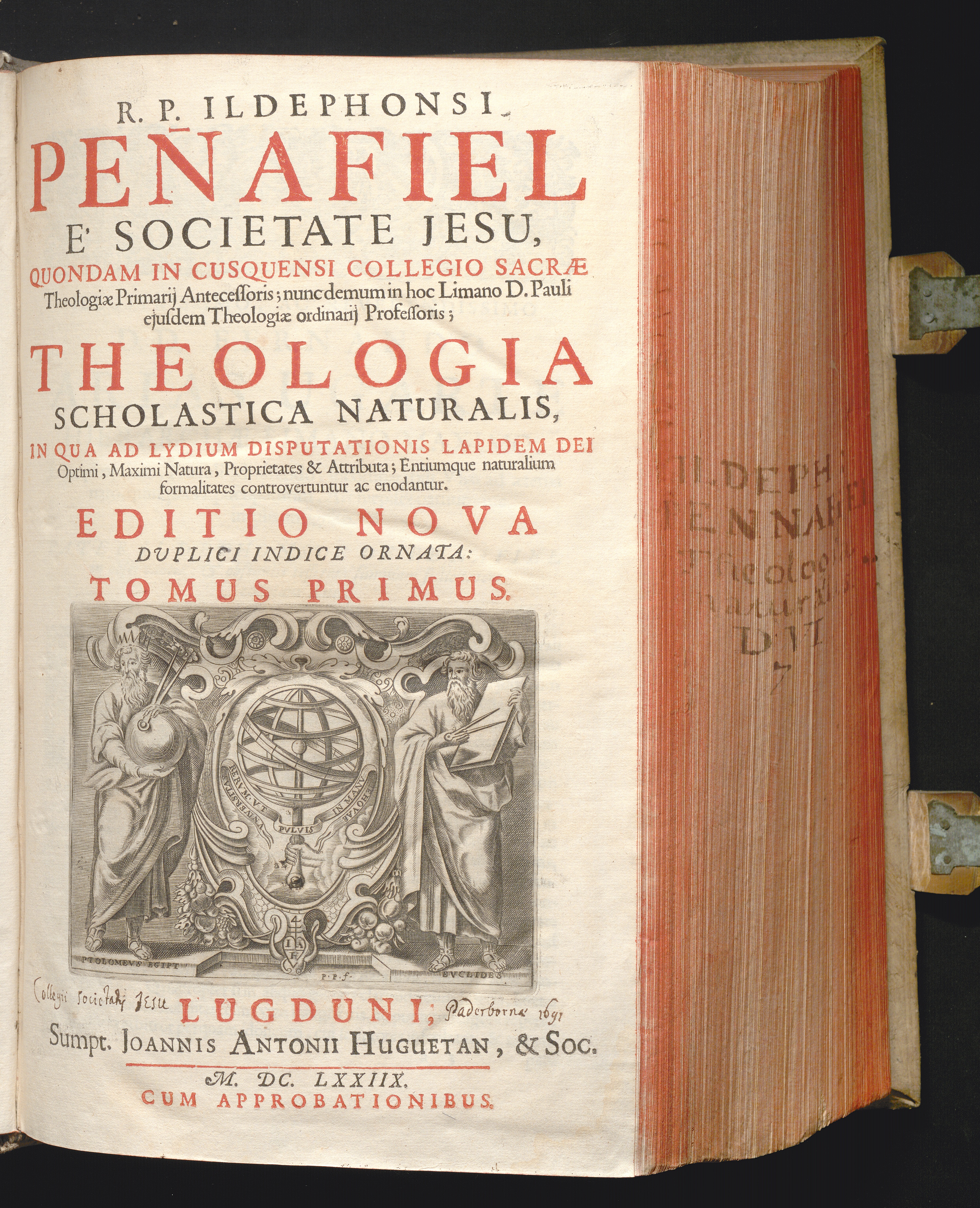 1 (1678) R. P. Ildephonsi Peñafiel E' Societate Jesu, Quondam In Cusquensi Collegio Sacræ Theologiæ Primarij Antecessoris ... Theologia Scholastica Naturalis : In Qua Ad Lydium Disputationis Lapidem Dei Optimi, Maximi Natura, Proprietates & Attributa; Entriumque naturalium formalitates controvertuntur ac enodantur