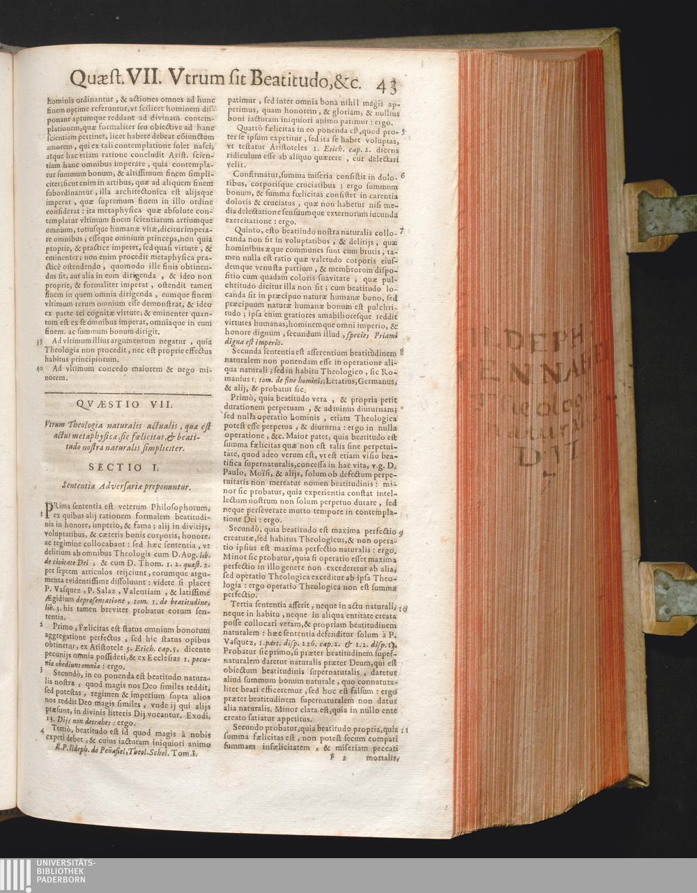 1 (1678) R. P. Ildephonsi Peñafiel E' Societate Jesu, Quondam In Cusquensi Collegio Sacræ Theologiæ Primarij Antecessoris ... Theologia Scholastica Naturalis : In Qua Ad Lydium Disputationis Lapidem Dei Optimi, Maximi Natura, Proprietates & Attributa; Entriumque naturalium formalitates controvertuntur ac enodantur