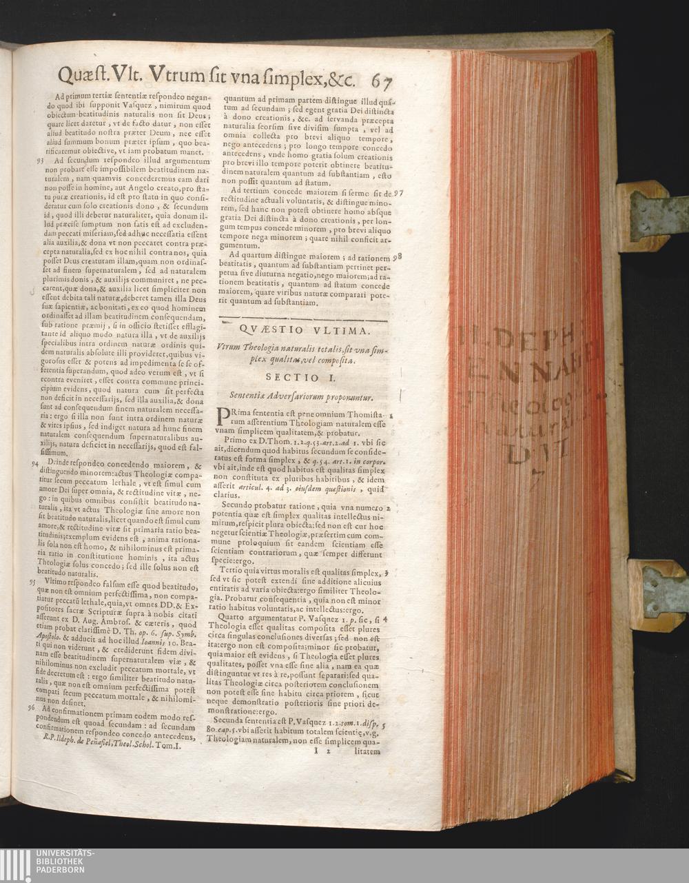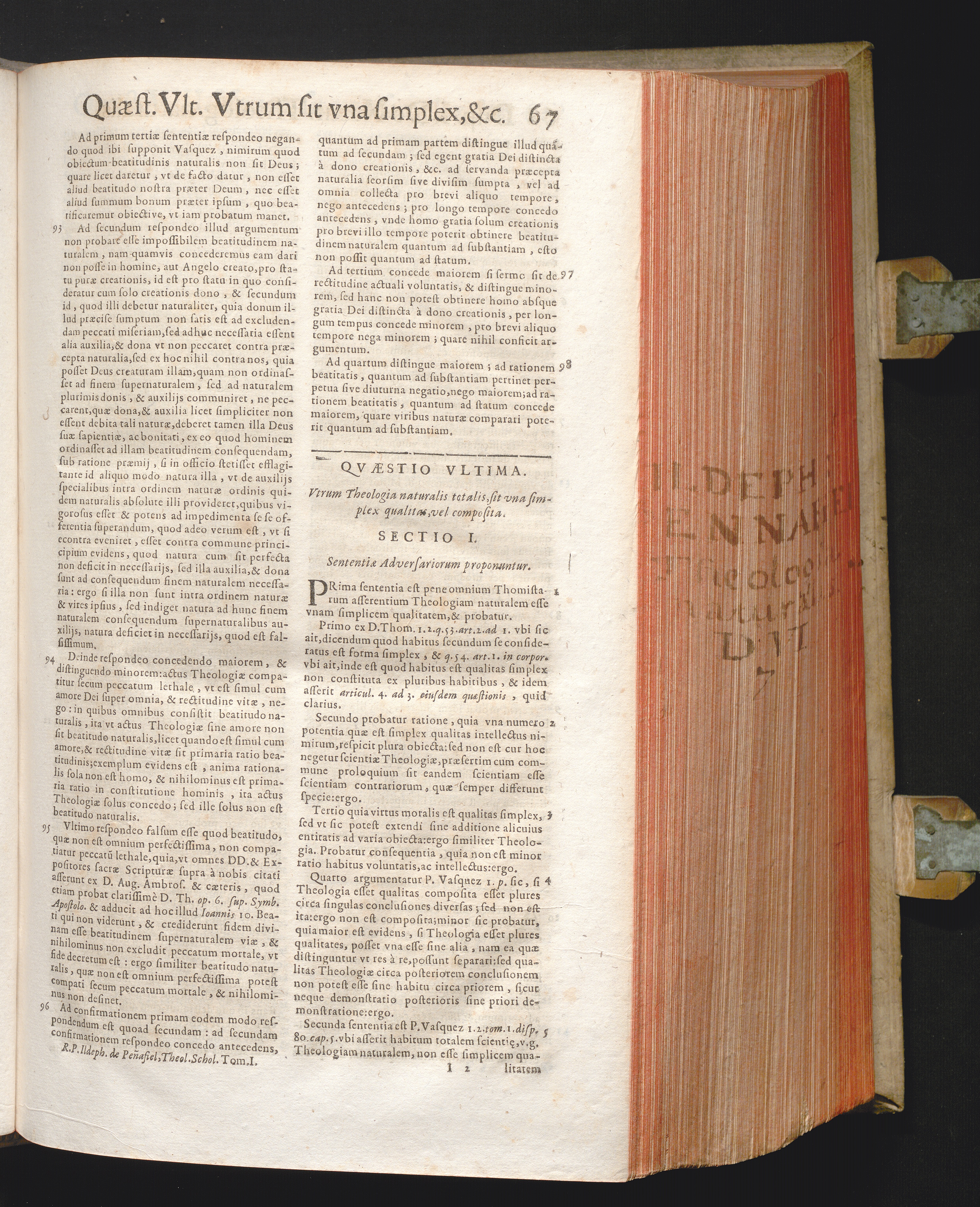 1 (1678) R. P. Ildephonsi Peñafiel E' Societate Jesu, Quondam In Cusquensi Collegio Sacræ Theologiæ Primarij Antecessoris ... Theologia Scholastica Naturalis : In Qua Ad Lydium Disputationis Lapidem Dei Optimi, Maximi Natura, Proprietates & Attributa; Entriumque naturalium formalitates controvertuntur ac enodantur
