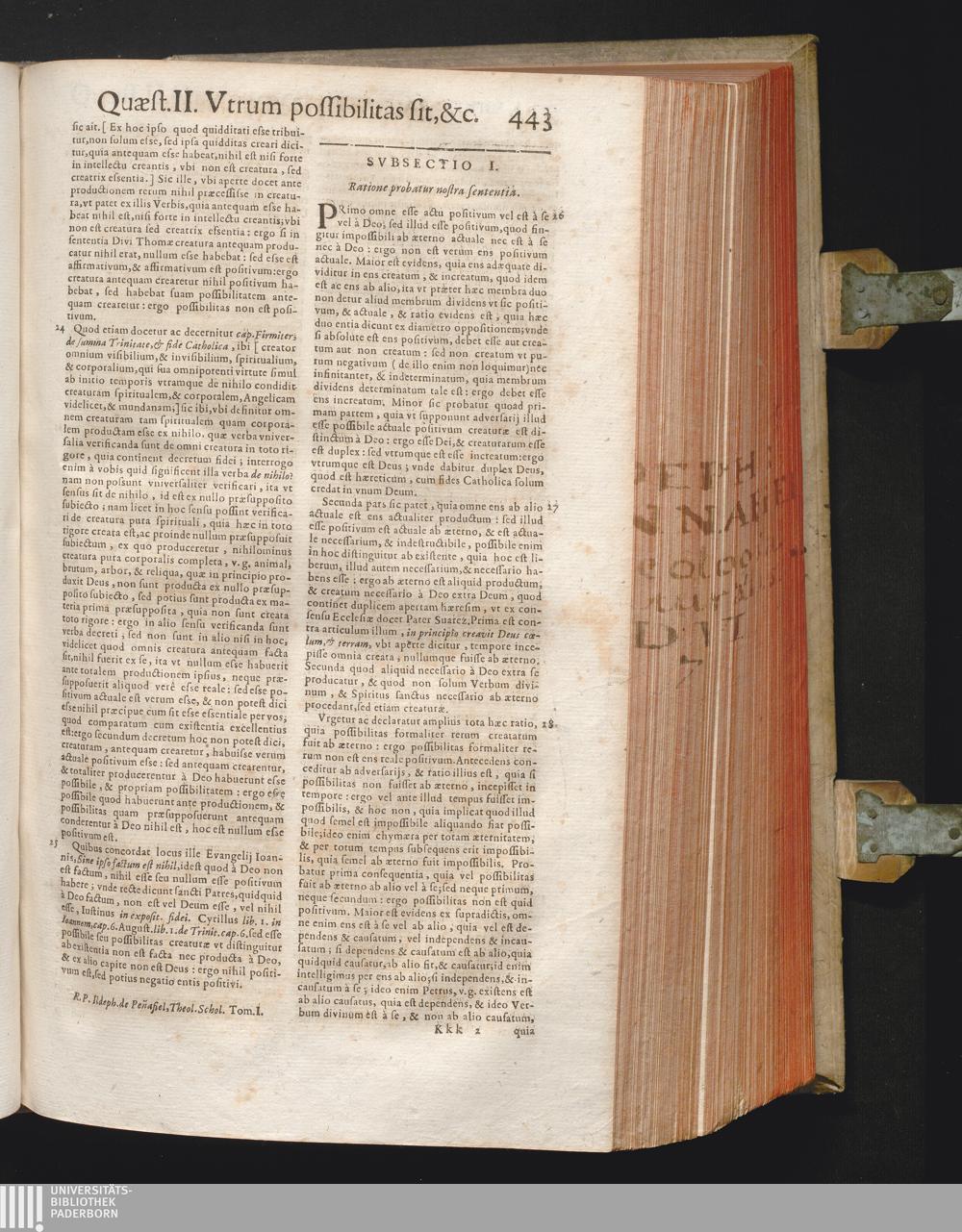 1 (1678) R. P. Ildephonsi Peñafiel E' Societate Jesu, Quondam In Cusquensi Collegio Sacræ Theologiæ Primarij Antecessoris ... Theologia Scholastica Naturalis : In Qua Ad Lydium Disputationis Lapidem Dei Optimi, Maximi Natura, Proprietates & Attributa; Entriumque naturalium formalitates controvertuntur ac enodantur