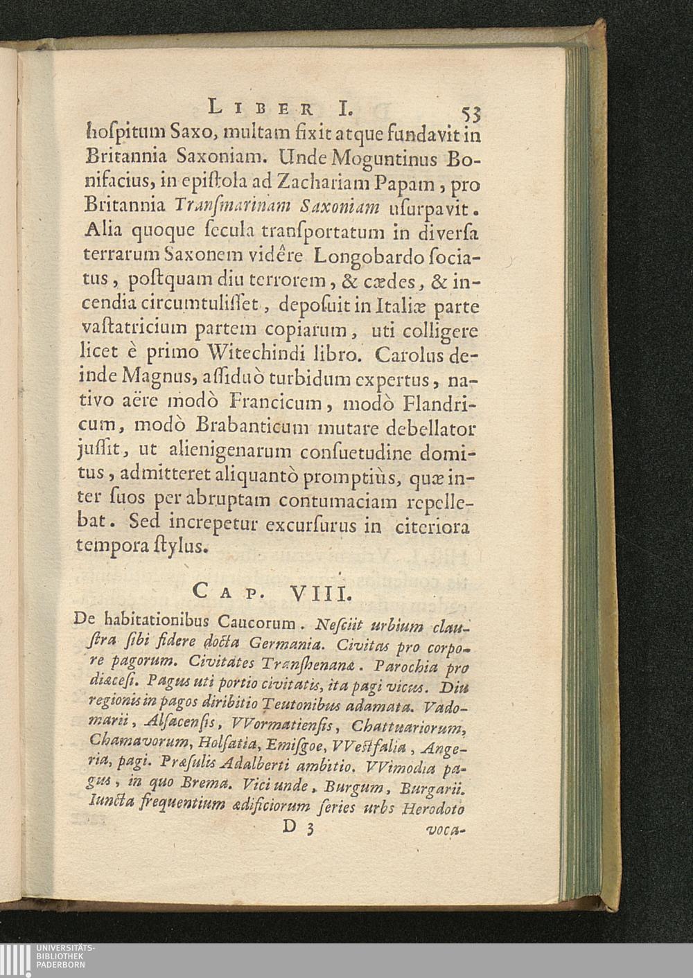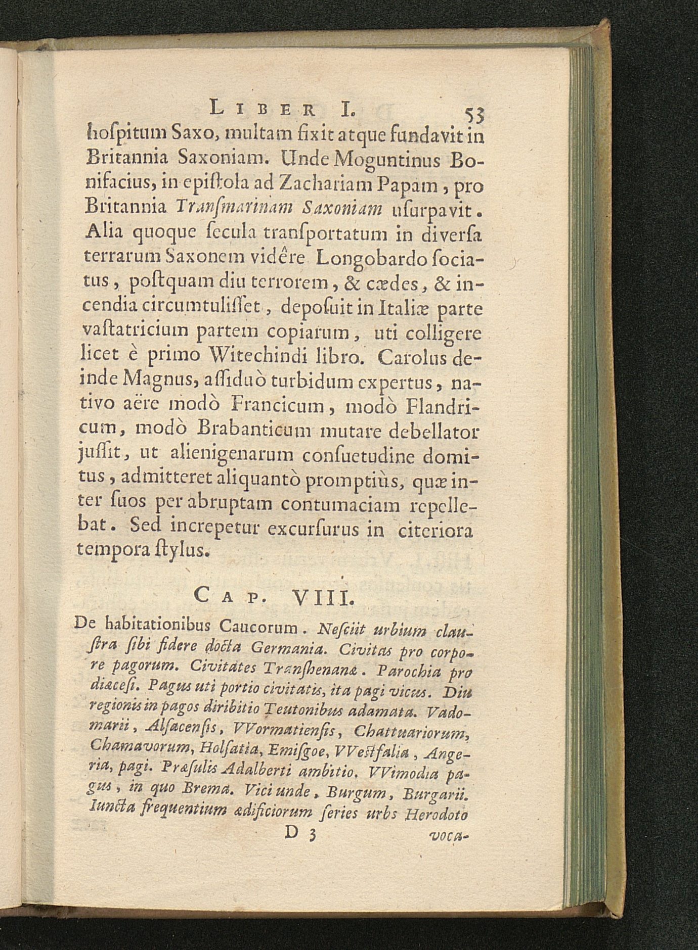 Cap. VIII. De habitationibus Caucorum. Nesciit urbium claustra sibi fidere docta[...]