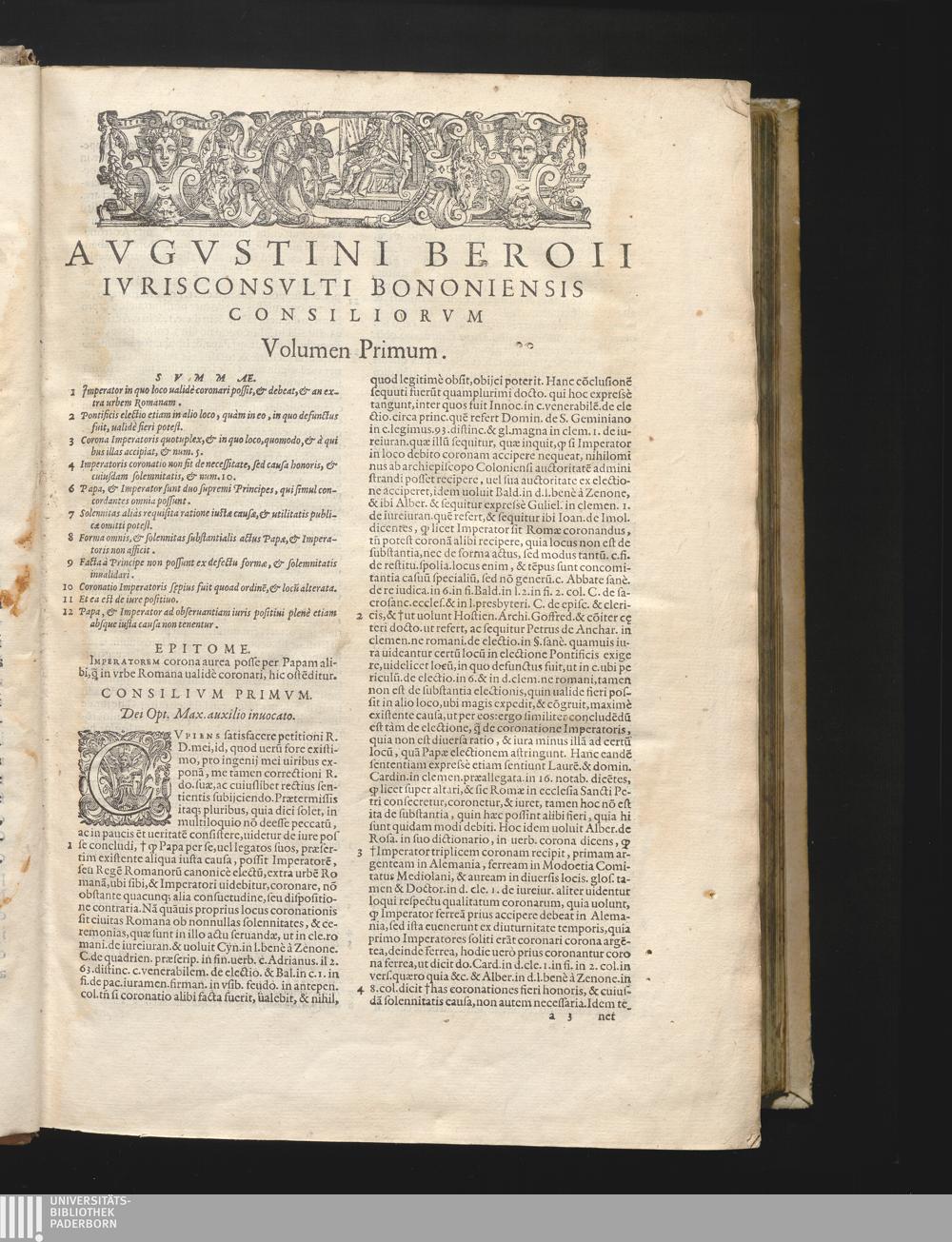 Consiliorvm Sive Responsorvm Avgvstini Beroii Bononien. I. C. Praestantissimi Volumen[...]
