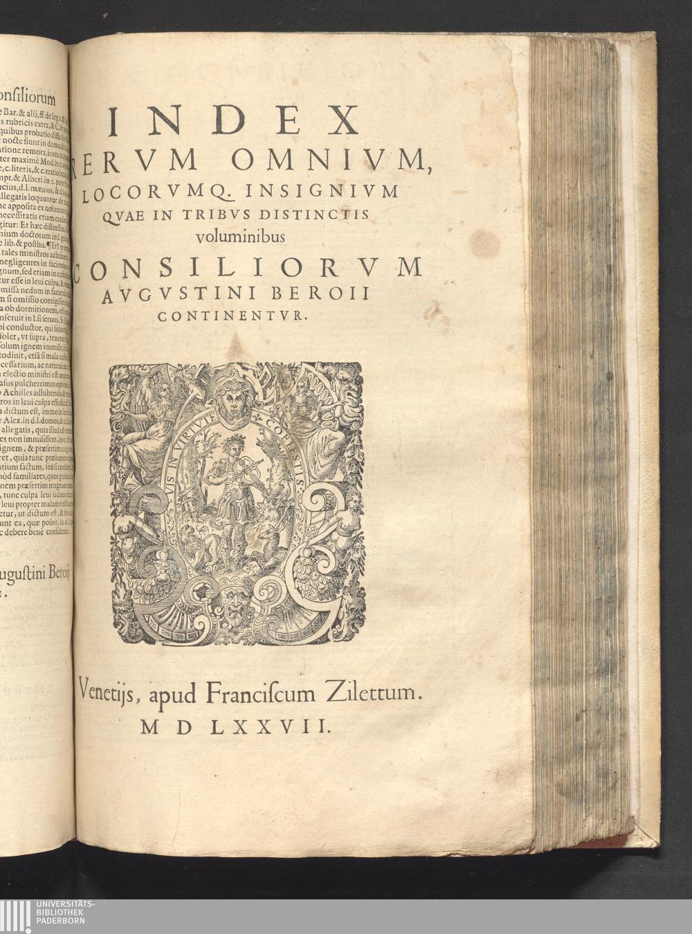 Index (1577) Index Rervm Omnivm, Locorvmq[ue] Insignivm Qvae In Tribvs Dinstictis voluminibus Consiliorvm Avgvstini Beroii Continentvr