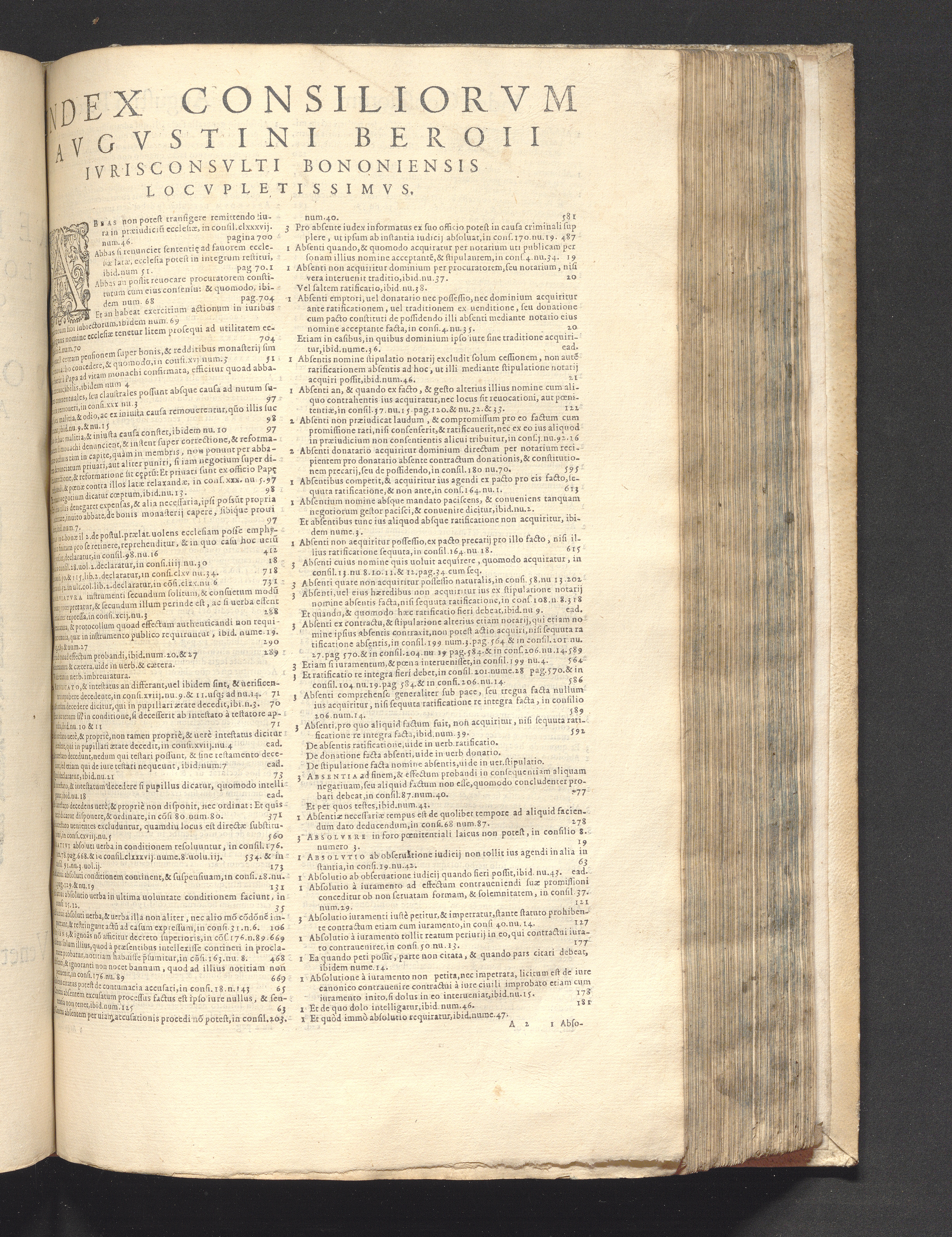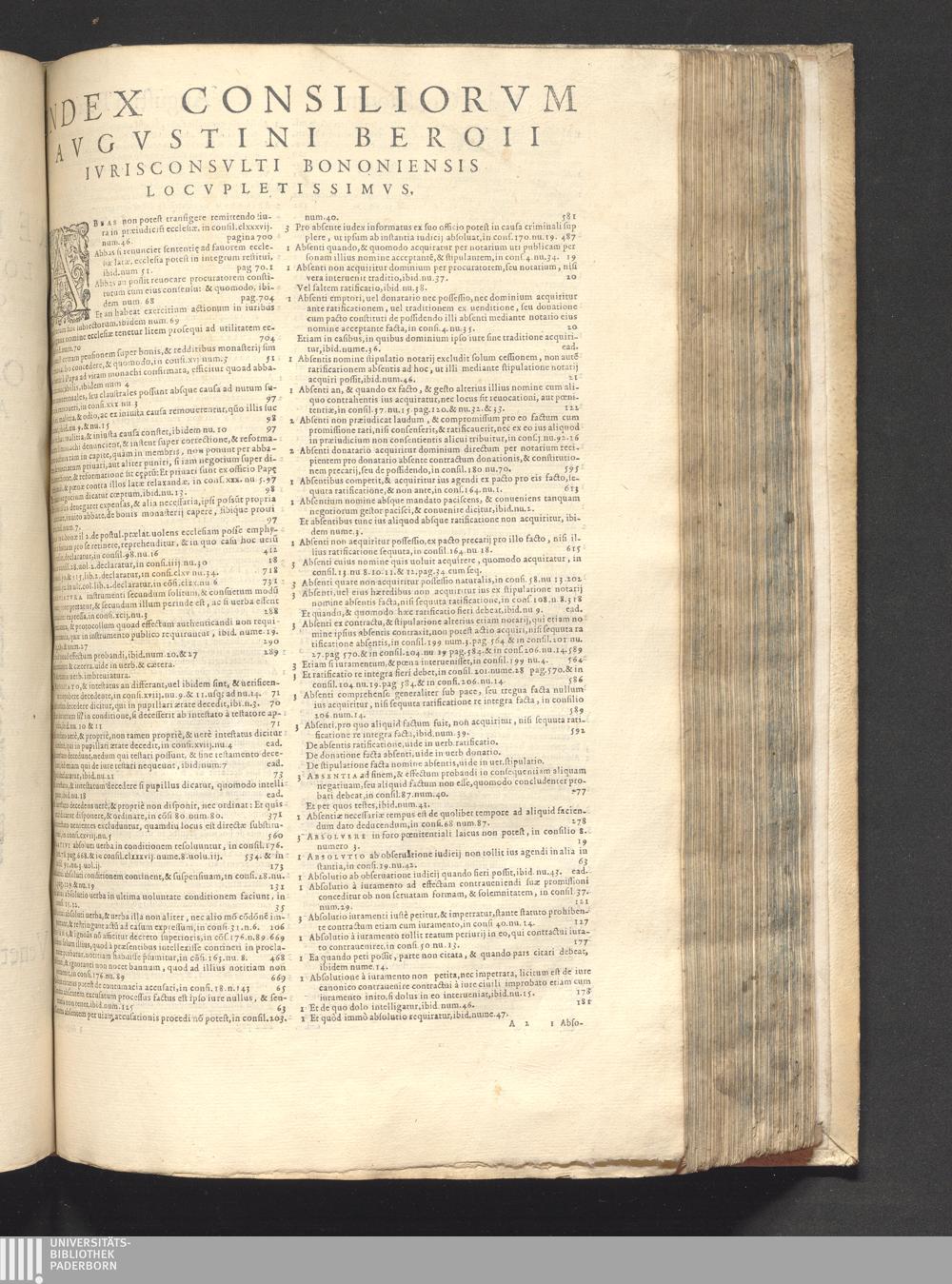 Index. Index Rervm Omnivm, Locorvmq[ue] Insignivm Qvae In Tribvs Dinstictis voluminibus Consiliorvm Avgvstini Beroii Continentvr