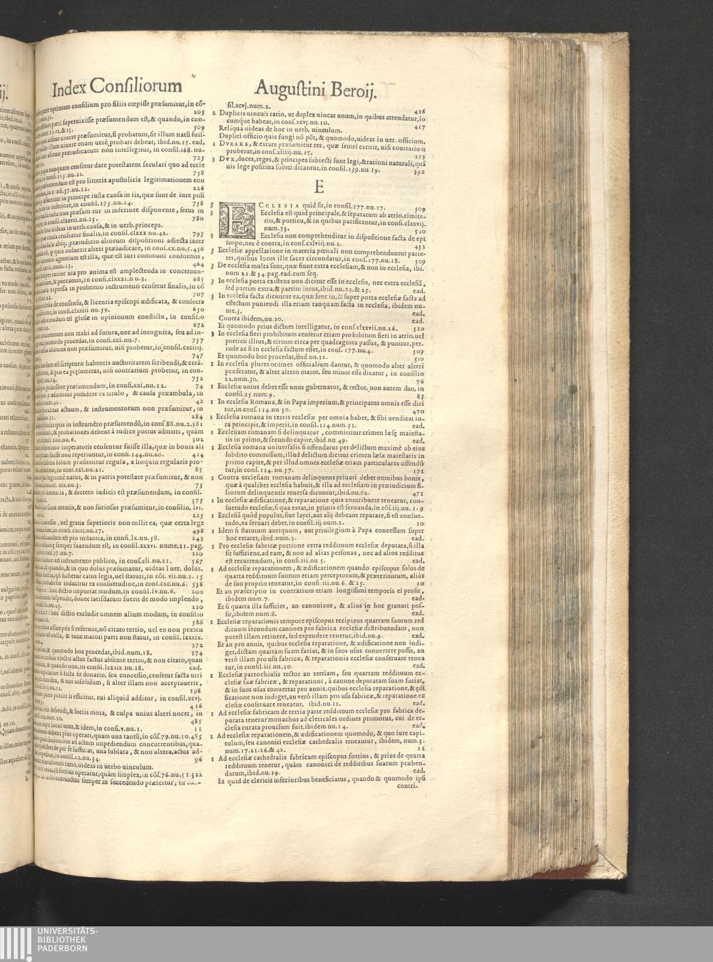 Index (1577) Index Rervm Omnivm, Locorvmq[ue] Insignivm Qvae In Tribvs Dinstictis voluminibus Consiliorvm Avgvstini Beroii Continentvr