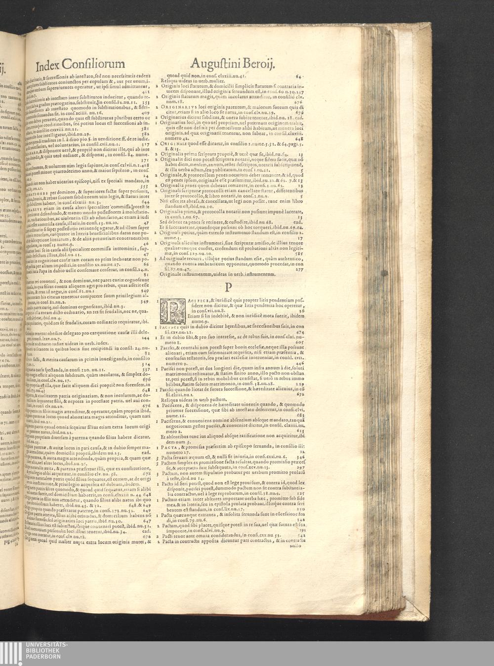 Index (1577) Index Rervm Omnivm, Locorvmq[ue] Insignivm Qvae In Tribvs Dinstictis voluminibus Consiliorvm Avgvstini Beroii Continentvr