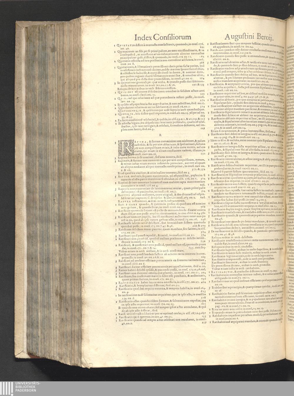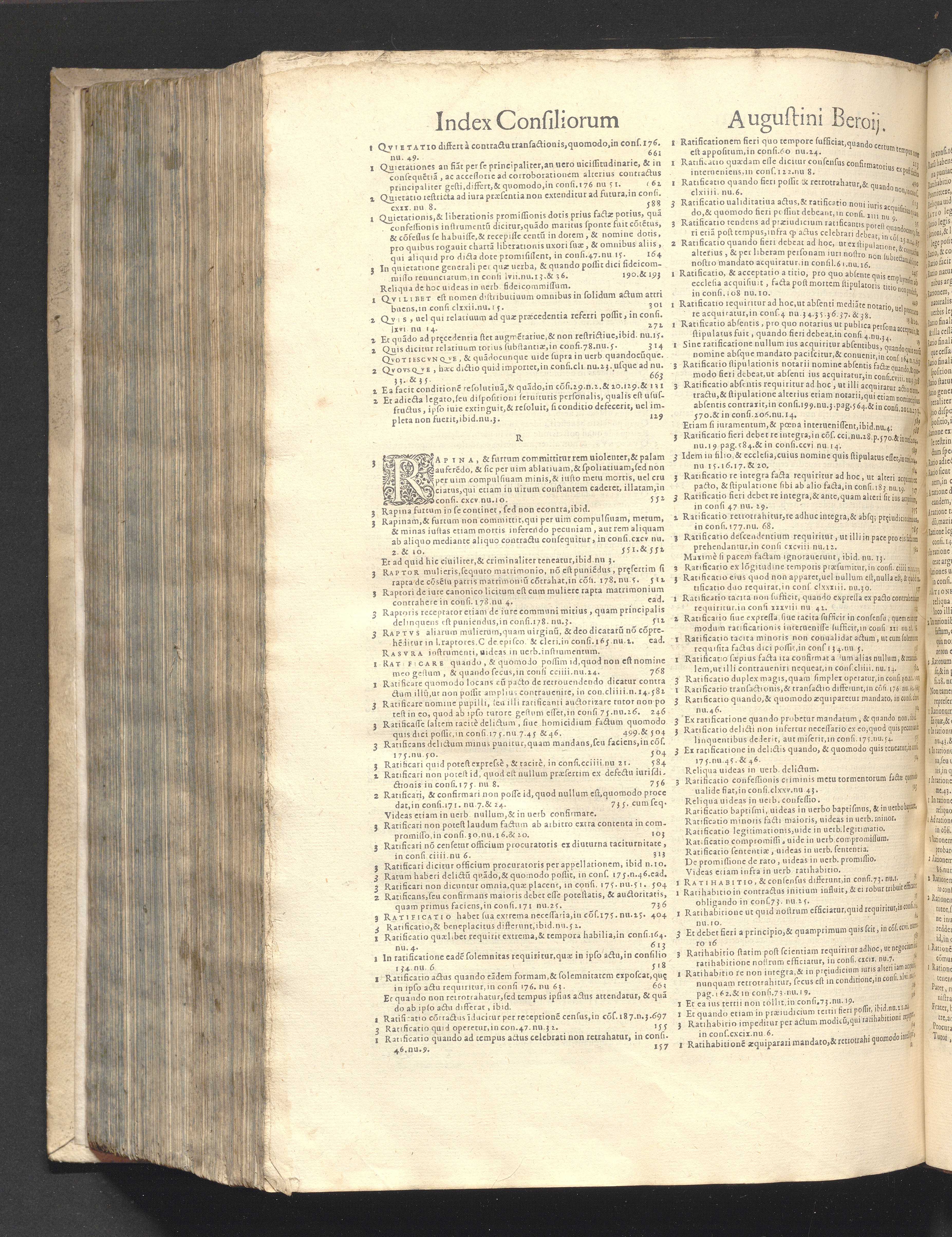 Index (1577) Index Rervm Omnivm, Locorvmq[ue] Insignivm Qvae In Tribvs Dinstictis voluminibus Consiliorvm Avgvstini Beroii Continentvr