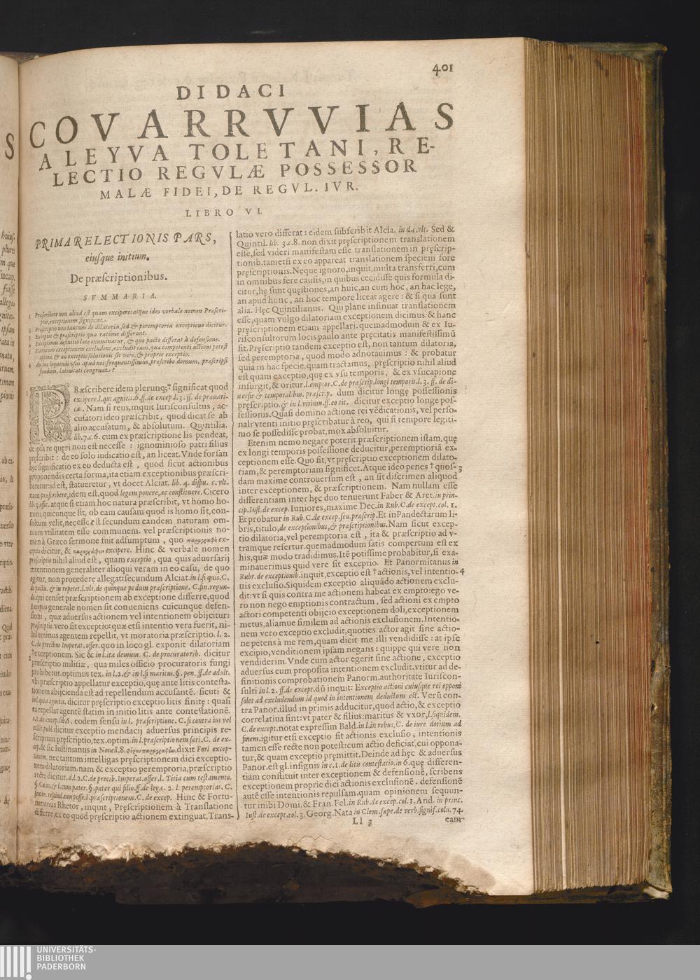 1 (1610) Didaci Covarrvvias A Leyva Toletani Episcopi Segobiensis ... Opera Omnia : Cvm Avctoris Tractatv In Tit. De Frigidis Et Maleficiatis, Septem quaestionibus distinctus, quibus an matrimonium cum hoc impedimento constare poßit, accuratè explicatur / Mvltis In Locis A CL. IC. Cornelio Brederodio auctus, illustratus, vt passim hâc notâ [] designatur