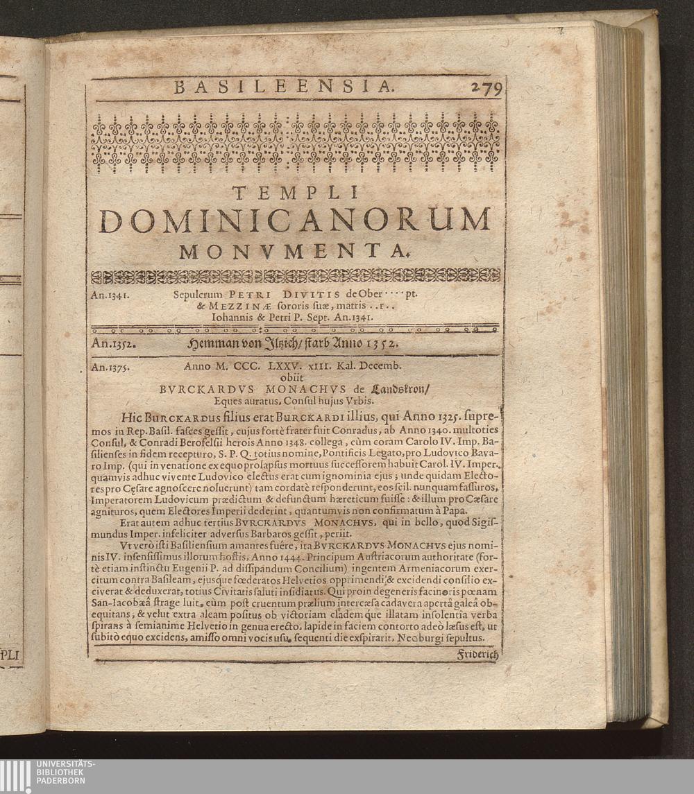Basilea Sepulta Retecta Continuata. Hoc est: Tam Urbis quàm Agri Basileensis Monumenta Sepulchralia, Templorum Omnium, Curiae, Academiae, Aliarumque Aedium Publicarum Latinae Et Germanicae Inscriptiones : Nunc verò in ordinatam annorum seriem locata & ad annum M. DC. LXI. continuata / Olim quidem à Reverendo & Clariß. Dn. M. Johanne Grossio, Pastore Leonhardino ad annum 1619. sparsim collecta
