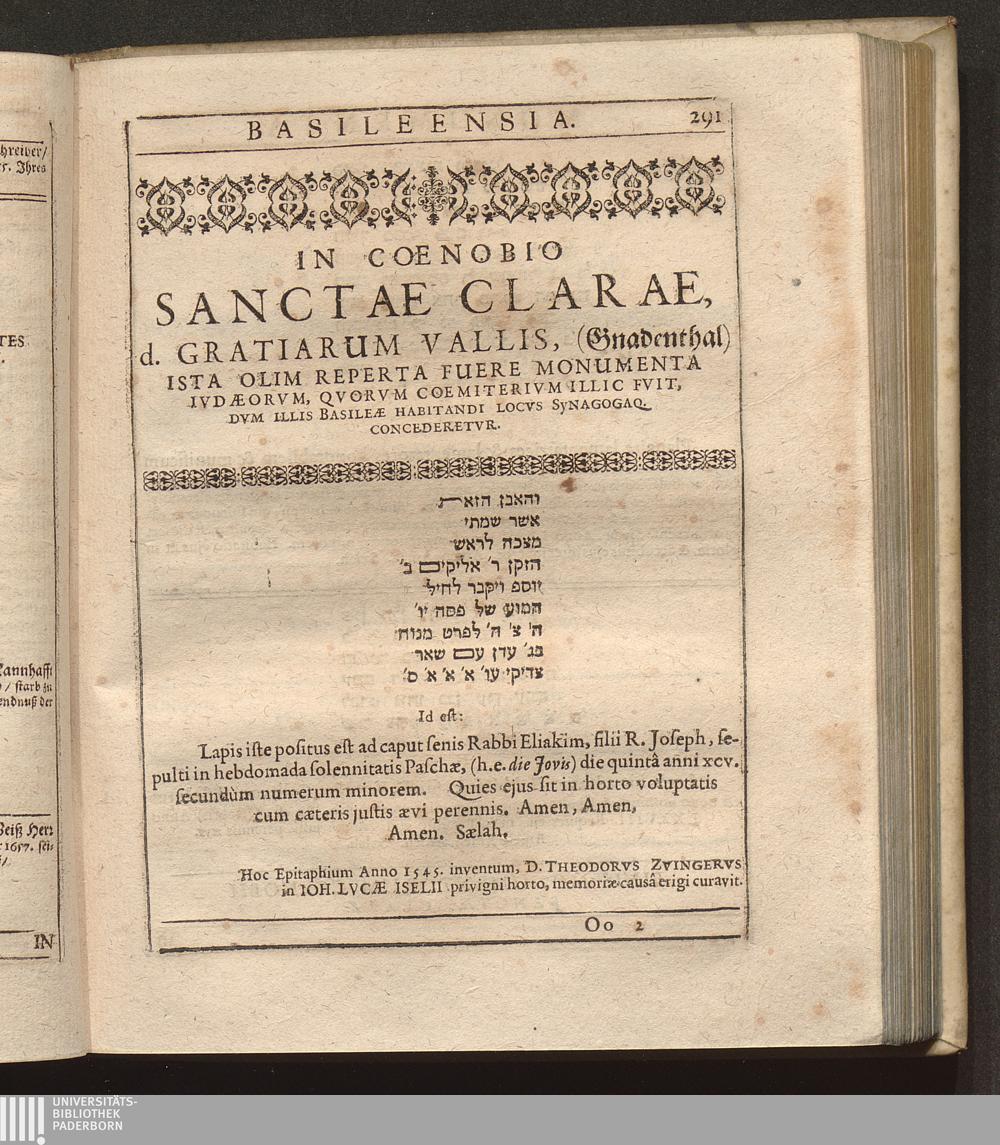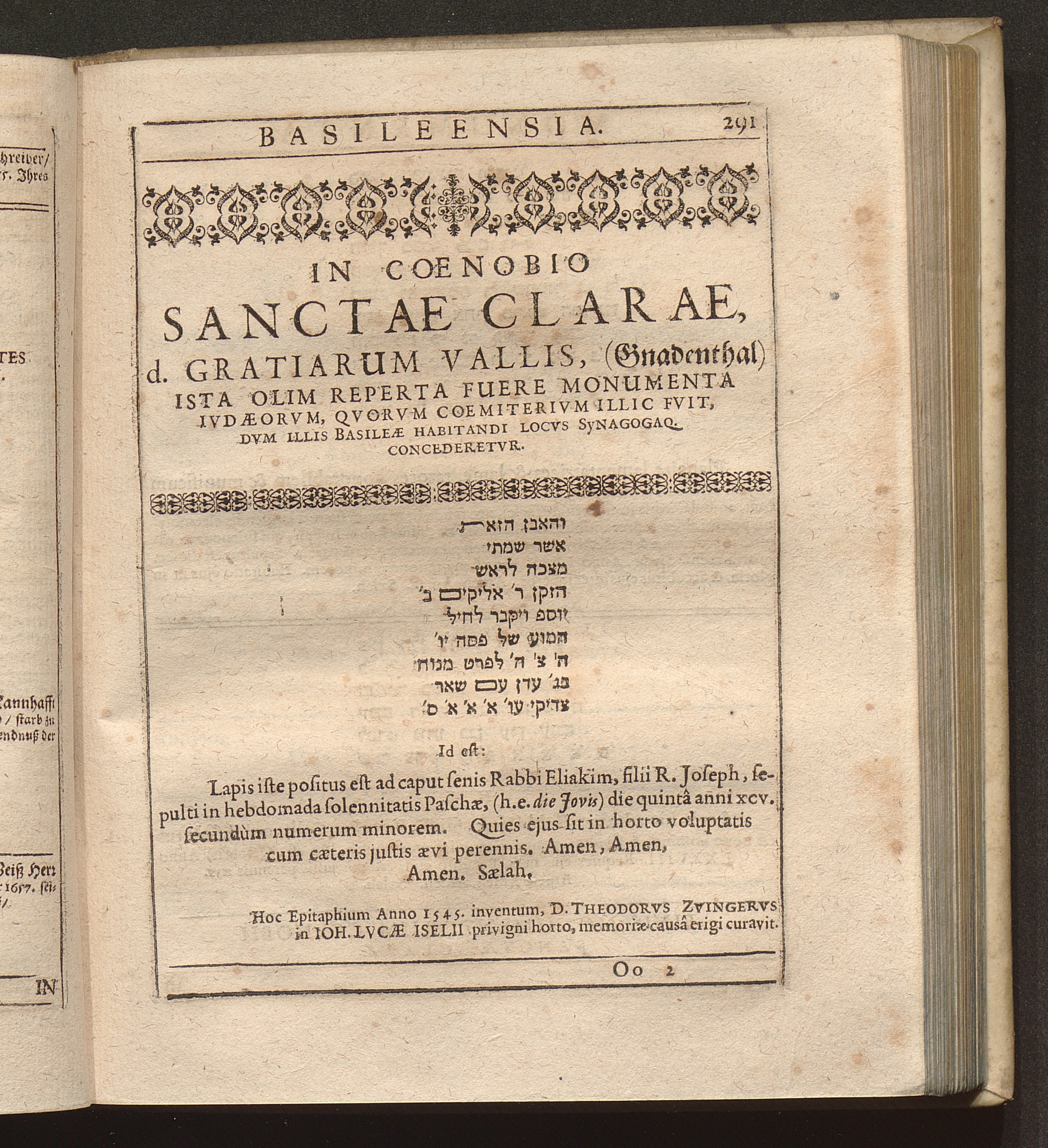 Basilea Sepulta Retecta Continuata. Hoc est: Tam Urbis quàm Agri Basileensis Monumenta Sepulchralia, Templorum Omnium, Curiae, Academiae, Aliarumque Aedium Publicarum Latinae Et Germanicae Inscriptiones : Nunc verò in ordinatam annorum seriem locata & ad annum M. DC. LXI. continuata / Olim quidem à Reverendo & Clariß. Dn. M. Johanne Grossio, Pastore Leonhardino ad annum 1619. sparsim collecta