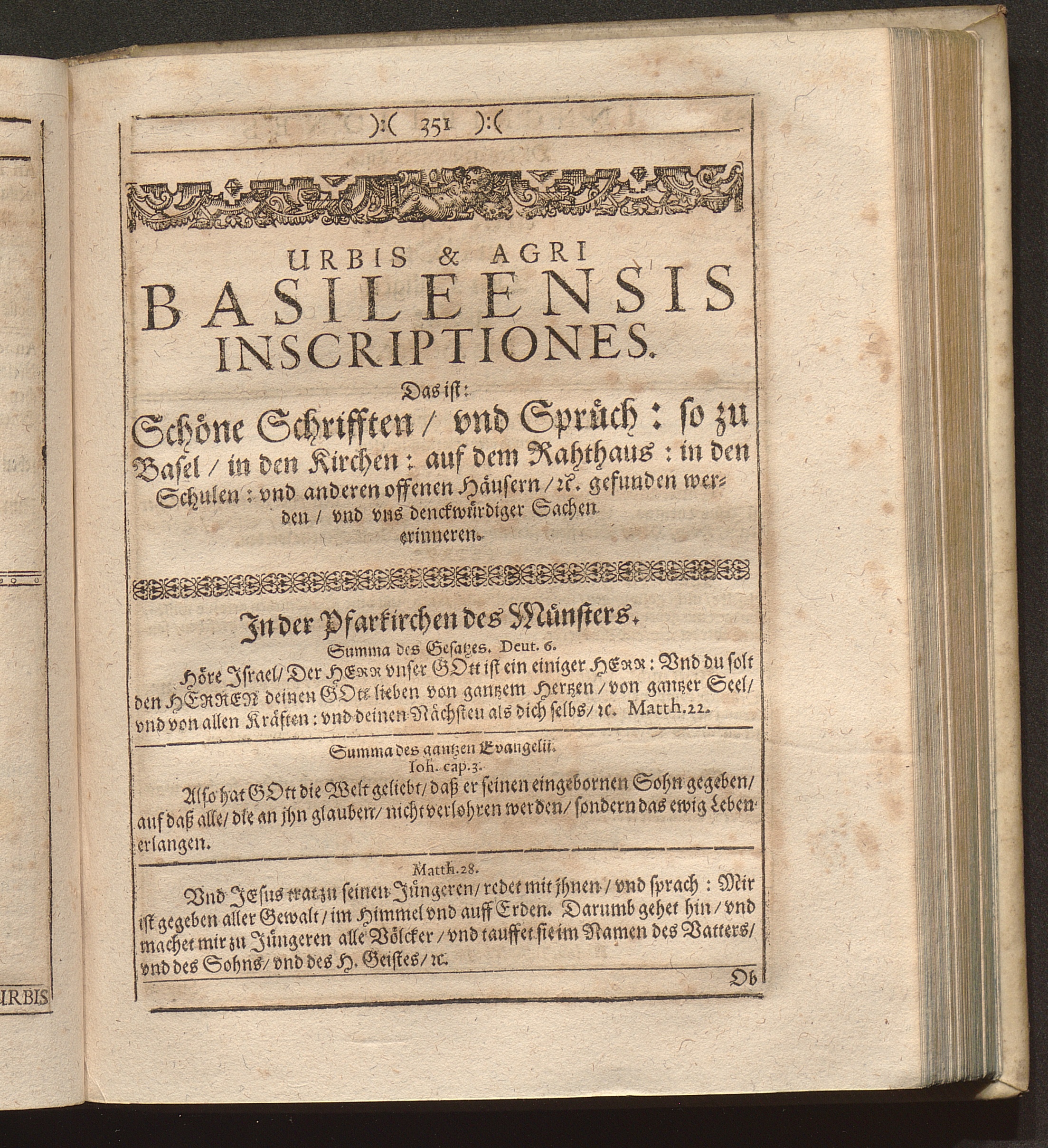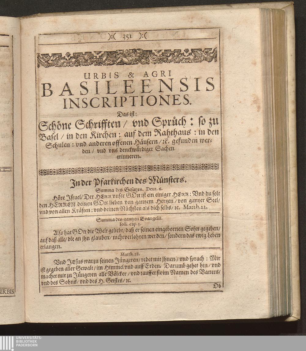 Basilea Sepulta Retecta Continuata. Hoc est: Tam Urbis quàm Agri Basileensis Monumenta Sepulchralia, Templorum Omnium, Curiae, Academiae, Aliarumque Aedium Publicarum Latinae Et Germanicae Inscriptiones : Nunc verò in ordinatam annorum seriem locata & ad annum M. DC. LXI. continuata / Olim quidem à Reverendo & Clariß. Dn. M. Johanne Grossio, Pastore Leonhardino ad annum 1619. sparsim collecta