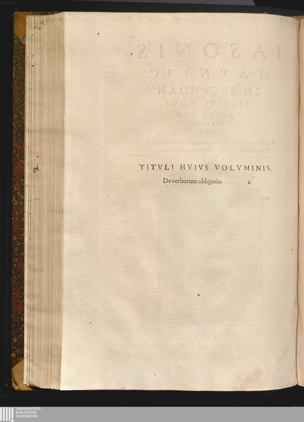 2 (1569) In Secvndam Digesti Novi Partem Commentarii / Accesserunt eiusdem Ias.quorundámq[ue] interpretum. & nouissimè I. Franc. Purpurati adnotamenta