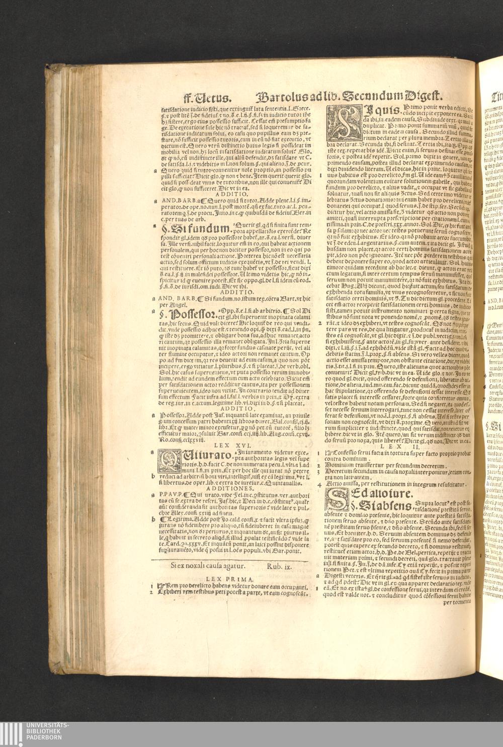 Bartolvs A Saxo Ferrato in primam Digesti Veteris Partem / Adnotationibus Alexandri Imolen. Barbatiæ, Parisij, Pomatis, Claud. à Seissel. Io. Franc. Rouer. & aliorum illustratus. Recens Adnotationes quamplurimæ præter ex ipsomet Alexandro de Imola ... reiectæ. In reliquis omnia præstita ... synceriore