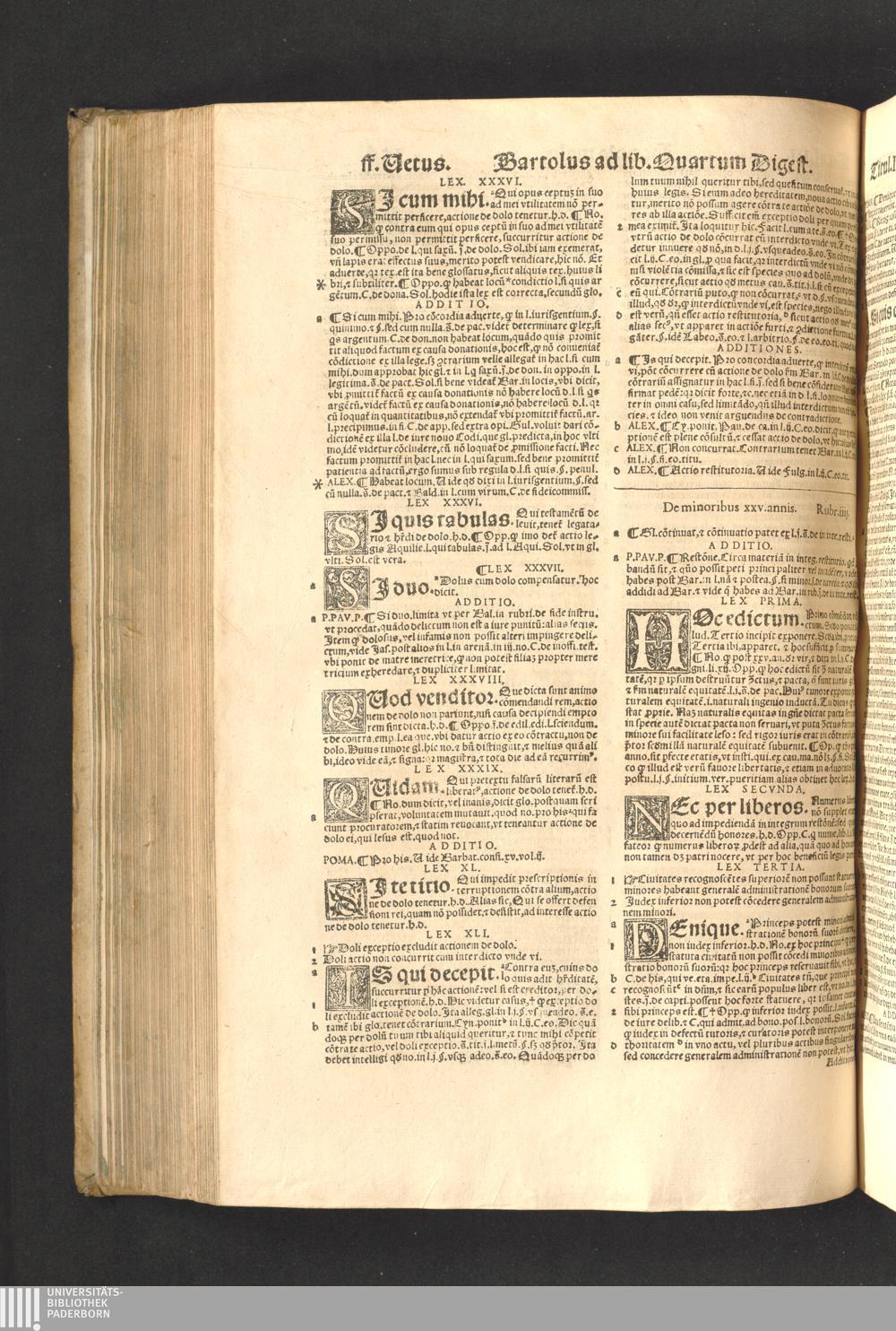 Bartolvs A Saxo Ferrato in primam Digesti Veteris Partem / Adnotationibus Alexandri Imolen. Barbatiæ, Parisij, Pomatis, Claud. à Seissel. Io. Franc. Rouer. & aliorum illustratus. Recens Adnotationes quamplurimæ præter ex ipsomet Alexandro de Imola ... reiectæ. In reliquis omnia præstita ... synceriore