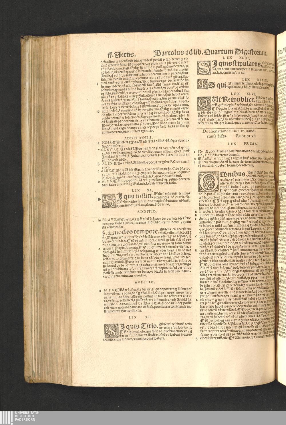 Bartolvs A Saxo Ferrato in primam Digesti Veteris Partem / Adnotationibus Alexandri Imolen. Barbatiæ, Parisij, Pomatis, Claud. à Seissel. Io. Franc. Rouer. & aliorum illustratus. Recens Adnotationes quamplurimæ præter ex ipsomet Alexandro de Imola ... reiectæ. In reliquis omnia præstita ... synceriore