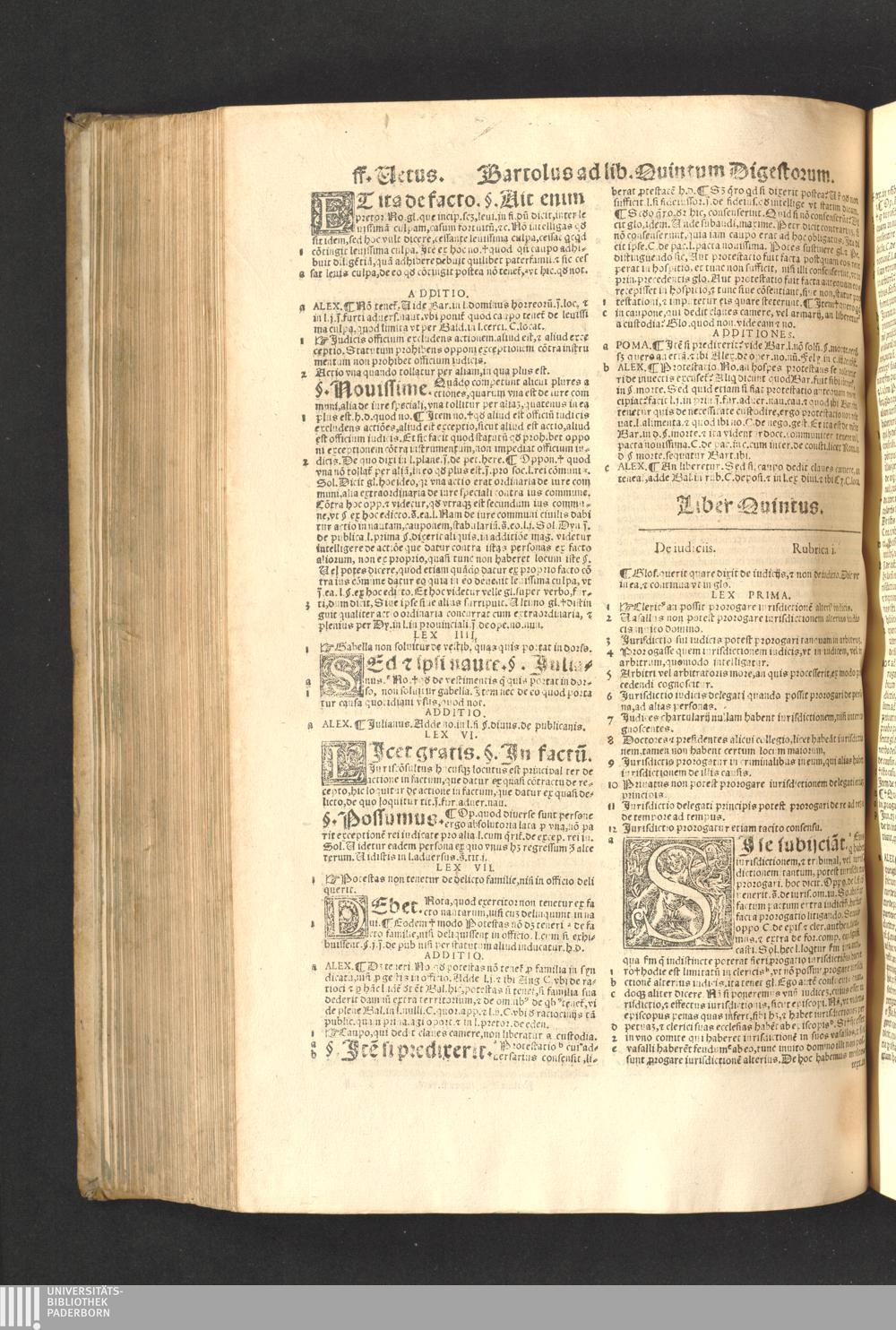 Bartolvs A Saxo Ferrato in primam Digesti Veteris Partem / Adnotationibus Alexandri Imolen. Barbatiæ, Parisij, Pomatis, Claud. à Seissel. Io. Franc. Rouer. & aliorum illustratus. Recens Adnotationes quamplurimæ præter ex ipsomet Alexandro de Imola ... reiectæ. In reliquis omnia præstita ... synceriore