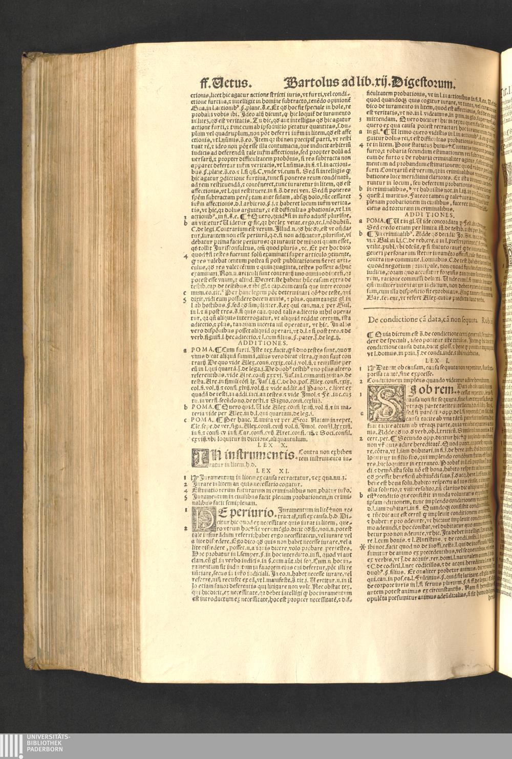 Bartolvs A Saxo Ferrato in primam Digesti Veteris Partem / Adnotationibus Alexandri Imolen. Barbatiæ, Parisij, Pomatis, Claud. à Seissel. Io. Franc. Rouer. & aliorum illustratus. Recens Adnotationes quamplurimæ præter ex ipsomet Alexandro de Imola ... reiectæ. In reliquis omnia præstita ... synceriore