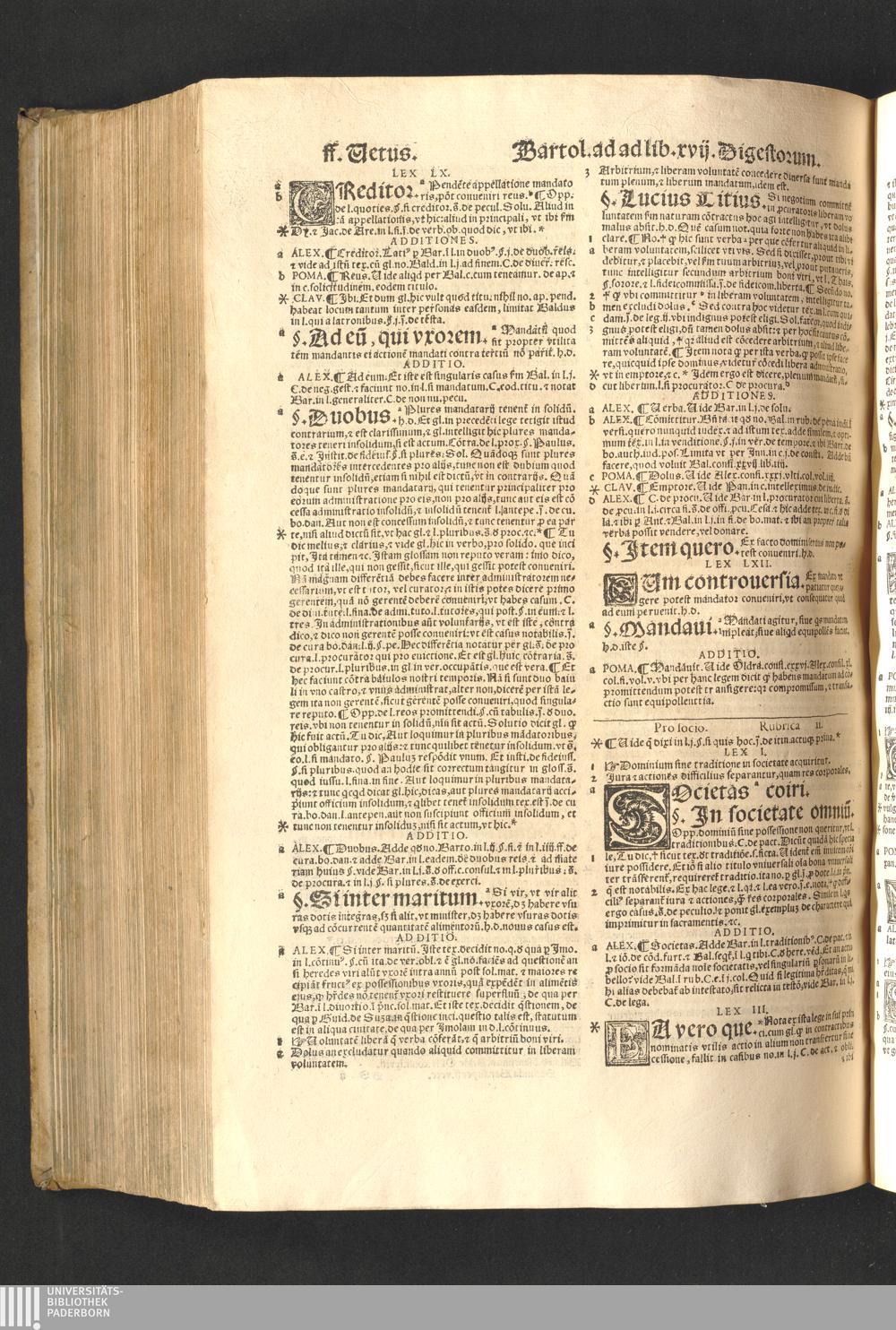 Bartolvs A Saxo Ferrato in primam Digesti Veteris Partem / Adnotationibus Alexandri Imolen. Barbatiæ, Parisij, Pomatis, Claud. à Seissel. Io. Franc. Rouer. & aliorum illustratus. Recens Adnotationes quamplurimæ præter ex ipsomet Alexandro de Imola ... reiectæ. In reliquis omnia præstita ... synceriore