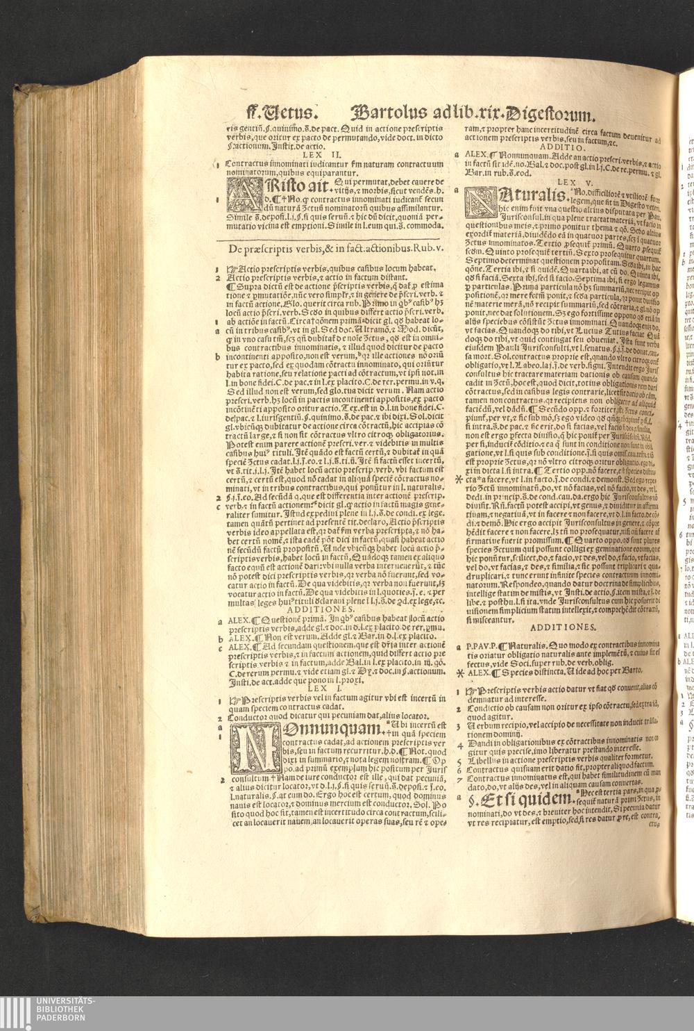 Bartolvs A Saxo Ferrato in primam Digesti Veteris Partem / Adnotationibus Alexandri Imolen. Barbatiæ, Parisij, Pomatis, Claud. à Seissel. Io. Franc. Rouer. & aliorum illustratus. Recens Adnotationes quamplurimæ præter ex ipsomet Alexandro de Imola ... reiectæ. In reliquis omnia præstita ... synceriore