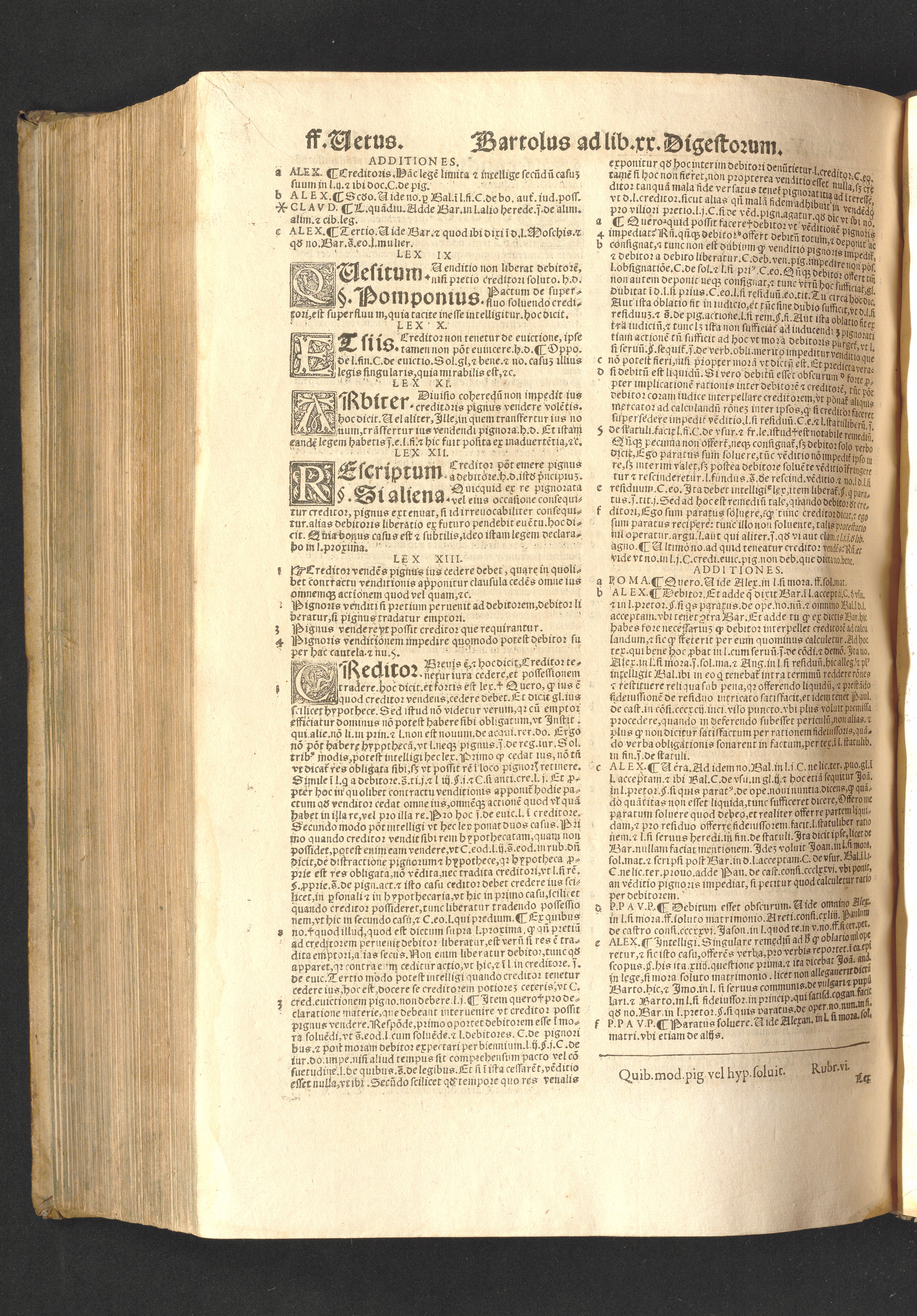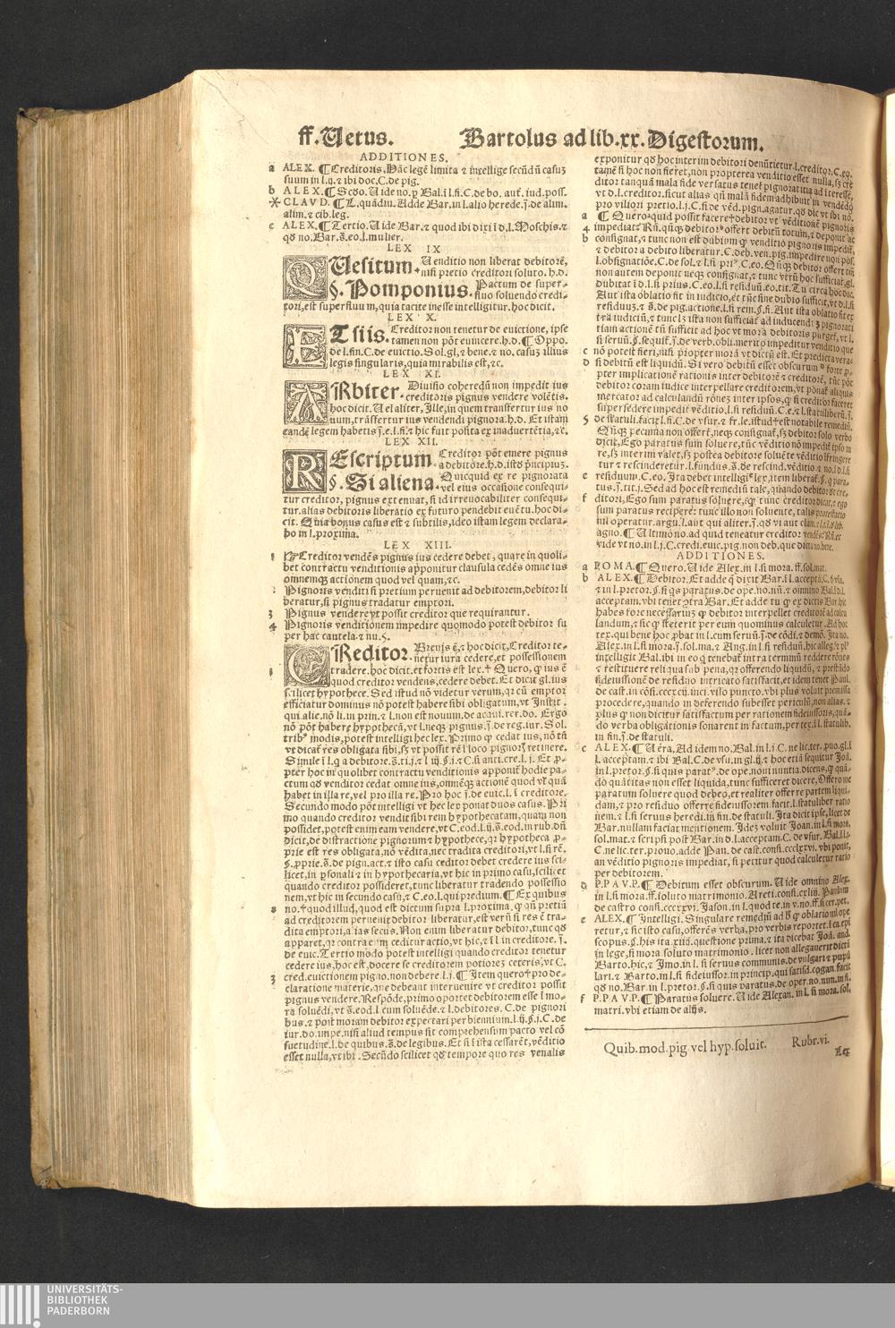Bartolvs A Saxo Ferrato in primam Digesti Veteris Partem / Adnotationibus Alexandri Imolen. Barbatiæ, Parisij, Pomatis, Claud. à Seissel. Io. Franc. Rouer. & aliorum illustratus. Recens Adnotationes quamplurimæ præter ex ipsomet Alexandro de Imola ... reiectæ. In reliquis omnia præstita ... synceriore