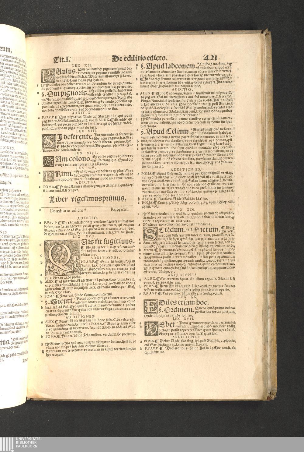 Bartolvs A Saxo Ferrato in primam Digesti Veteris Partem / Adnotationibus Alexandri Imolen. Barbatiæ, Parisij, Pomatis, Claud. à Seissel. Io. Franc. Rouer. & aliorum illustratus. Recens Adnotationes quamplurimæ præter ex ipsomet Alexandro de Imola ... reiectæ. In reliquis omnia præstita ... synceriore