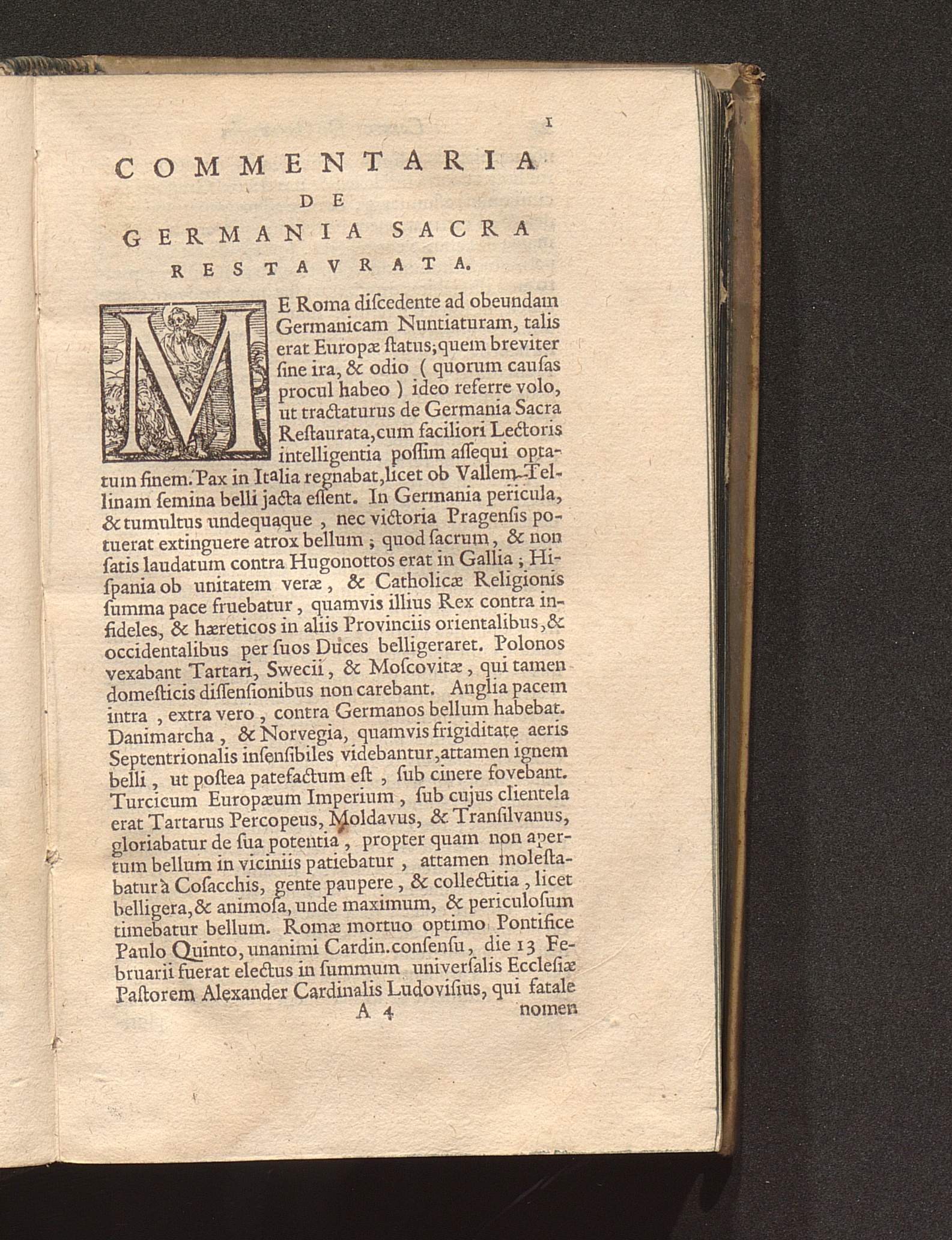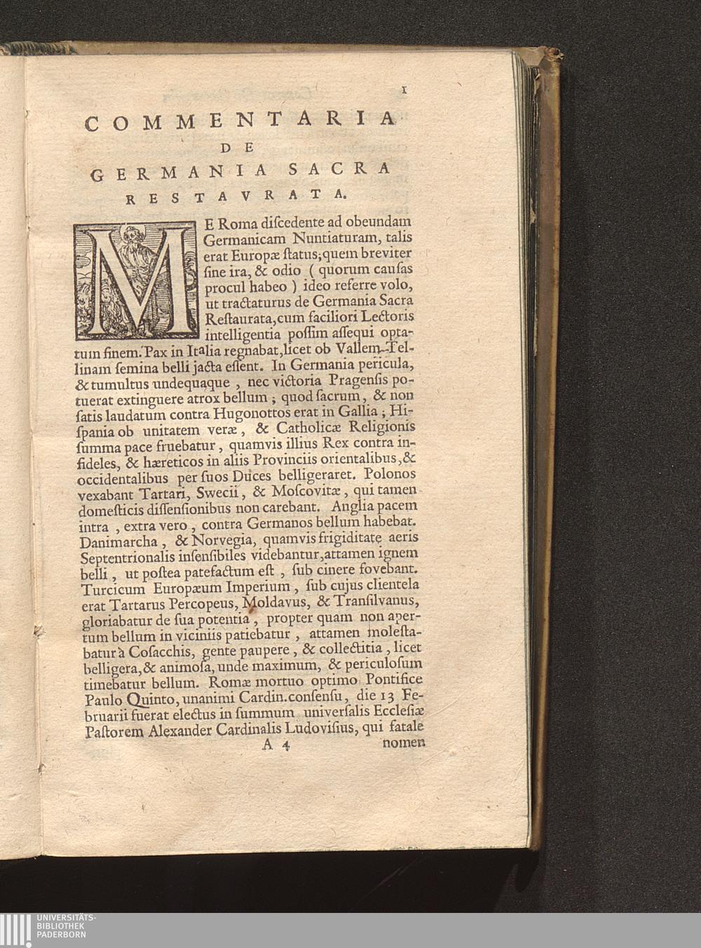 Caroli Carafa || Episcopi Aversani || Commentaria || De || Germania Sacra || Restavrata, || sub Summis PP. || Gregorio XV, || & || S. D. N. Vrbano VIII. || Regnante Aug. & Piiss.mo Imp. || Ferdinando Secvndo