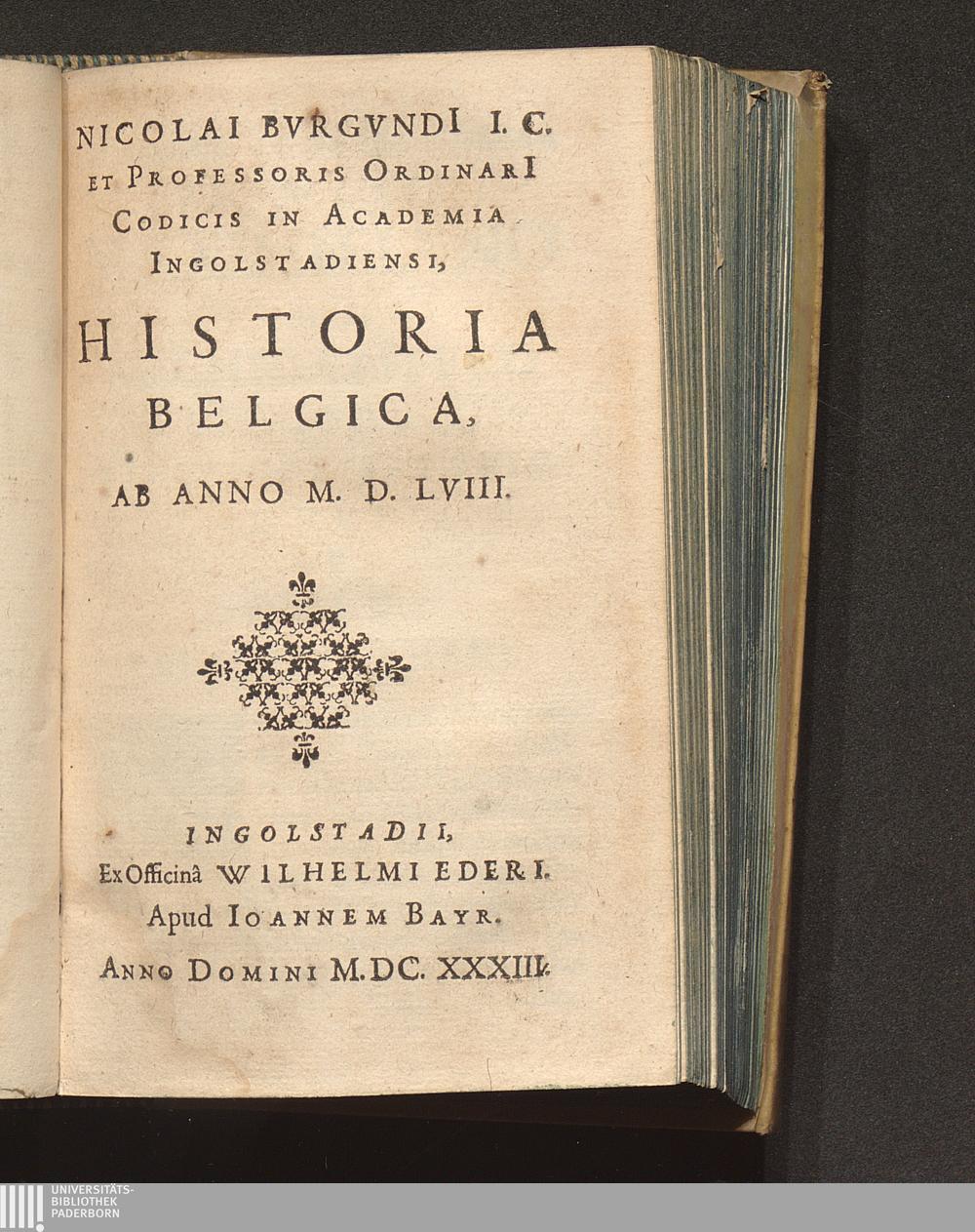 Nicolai Bvrgvndi[i] I. C. Et Professoris Ordinari[i] Codicis In Academia Ingolstadiensi, Historia Belgica, Ab Anno M. D. LVIII.