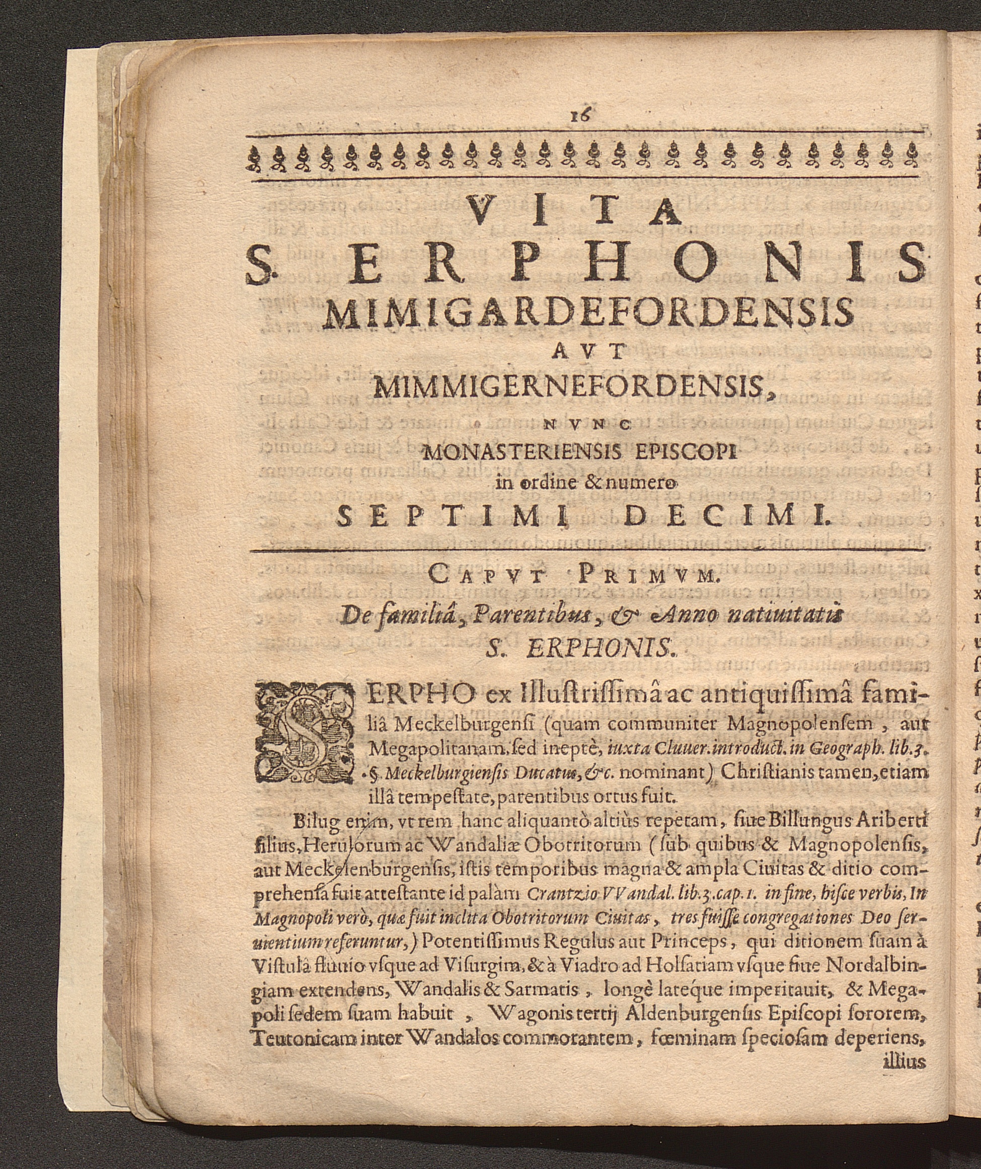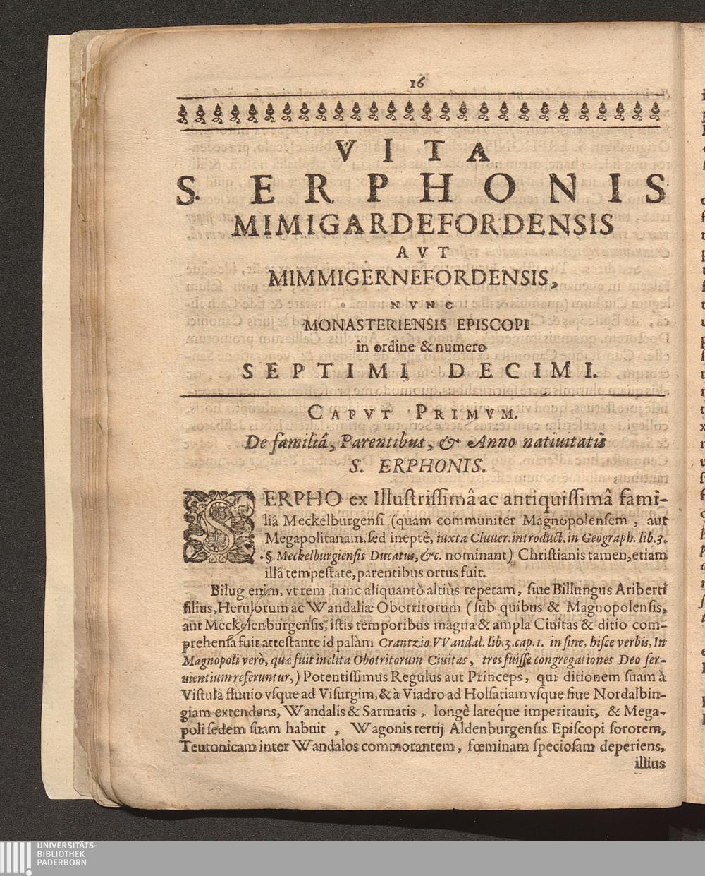 Vita S. Erphonis, Mimigardefordensis Avt Mimmigernefordensis Nvnc Monasteriensis Episcopi, In Ordine & Nvmero Septimi Decimi / Ab Alberto Boichorst I. V. D. Reuerendissimi & Illustris Capituli Cathedralis Ecclesiæ Monasteriensis, nec non Insignis Collegij S. Mauritij extra muros Syndico, per otium, non otiosè collecta