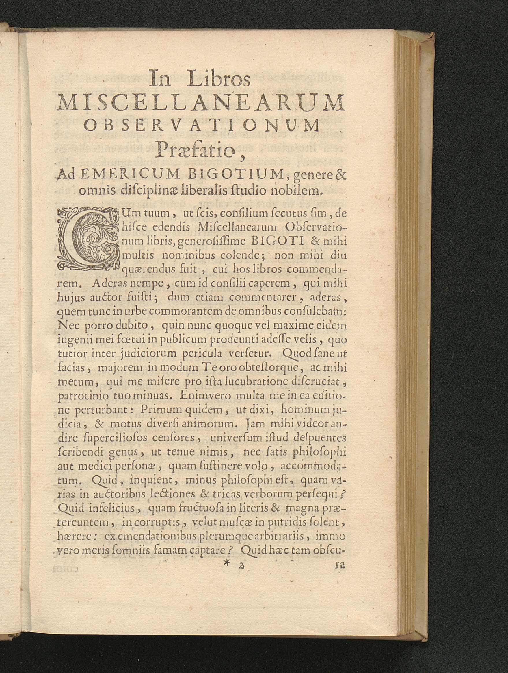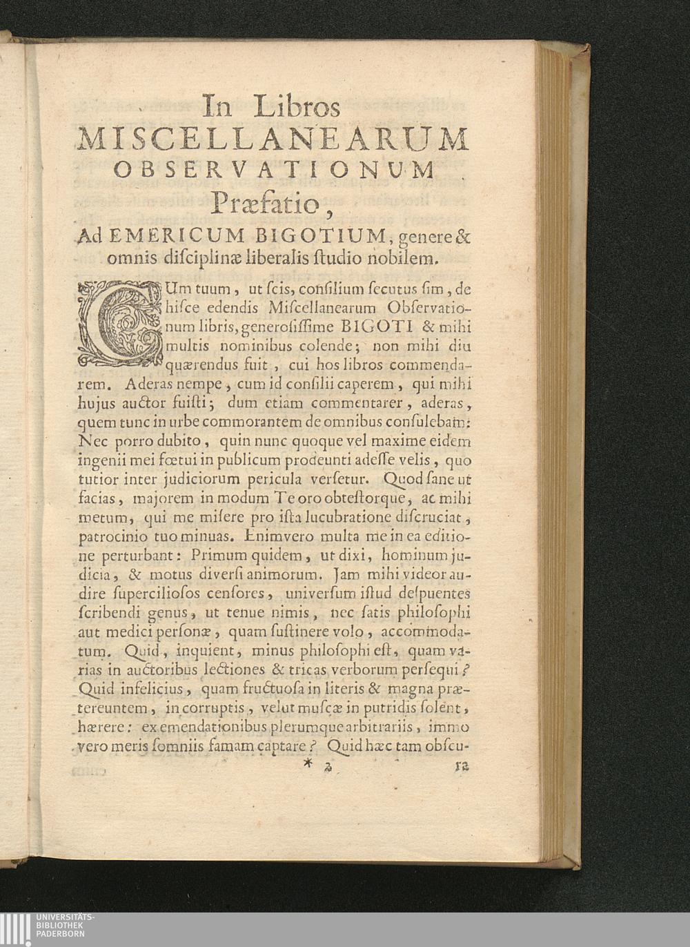 In Libros Miscellanearum Observationum Praefatio, Ad Emericum Bigotium, genere &[...]