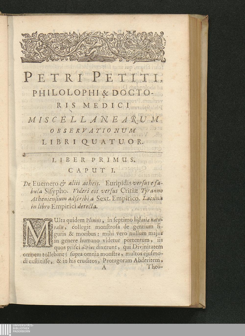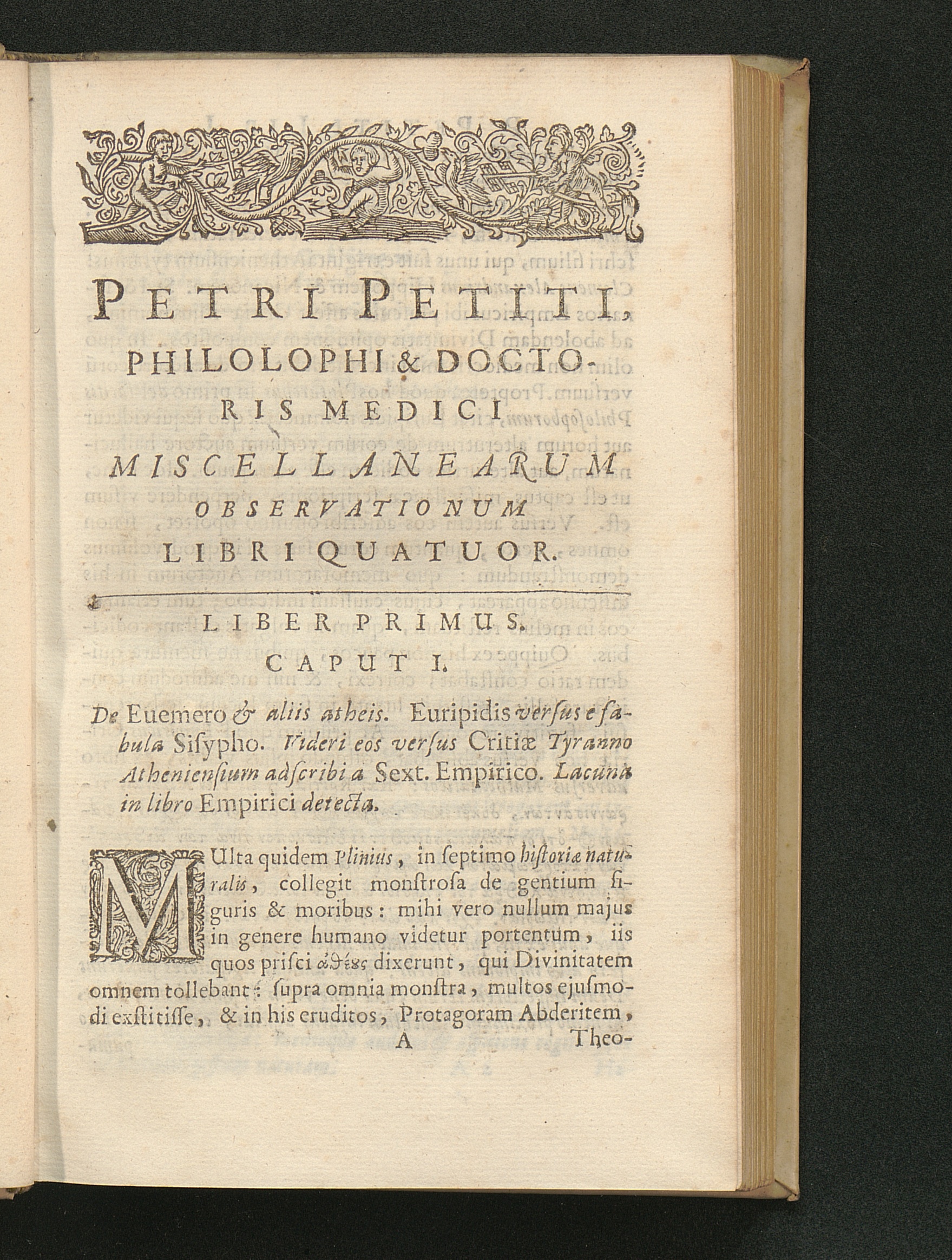 Petri Petiti Philosophi & Doctoris Medici, Miscellanearum Observationum Libri quatuor