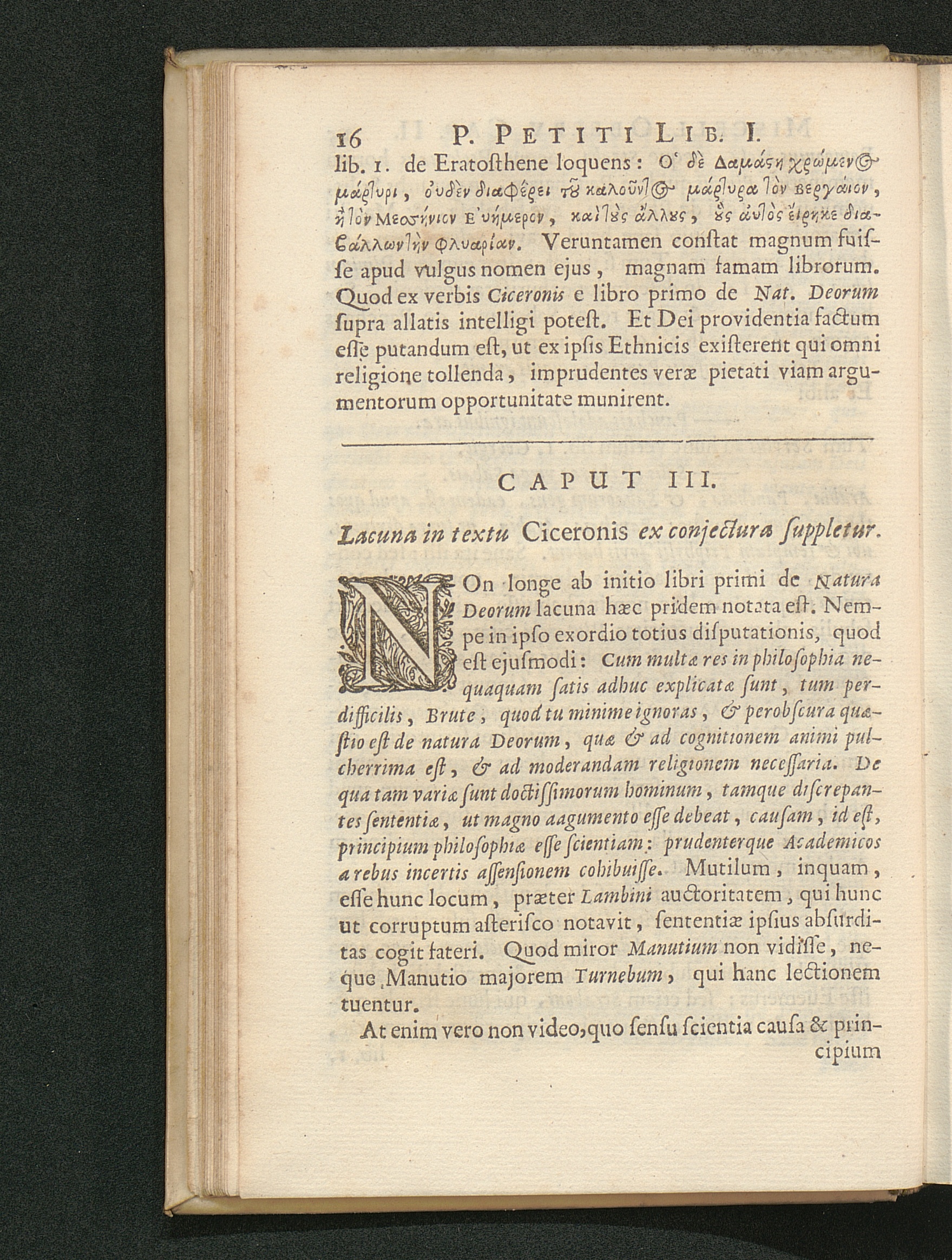 Cap. III. Lacuna in textu Ciceronis ex conjectura suppletur.