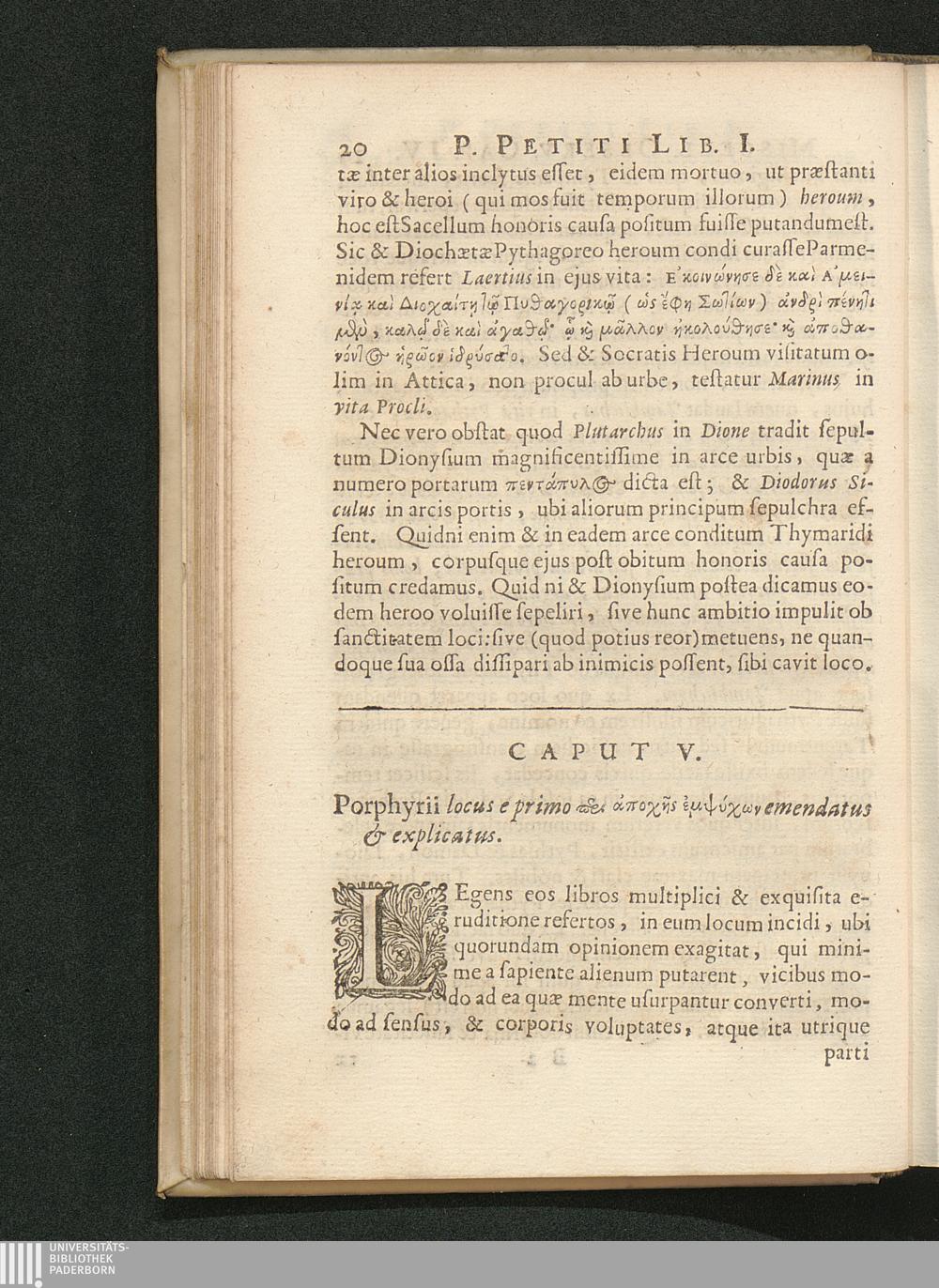 Cap. V. Porphyrii locus e primo [...] emendatus & explicatus.